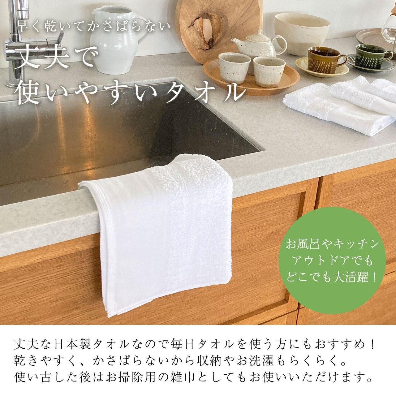 泉州タオル(Sensyu Towel) 使いやすい普通の白タオル(平地つき) 12枚セット 薄手 日本製 フェイスタオル 200匁 綿100% 業務用 飲食店 美容院 銭湯 まとめ買い
