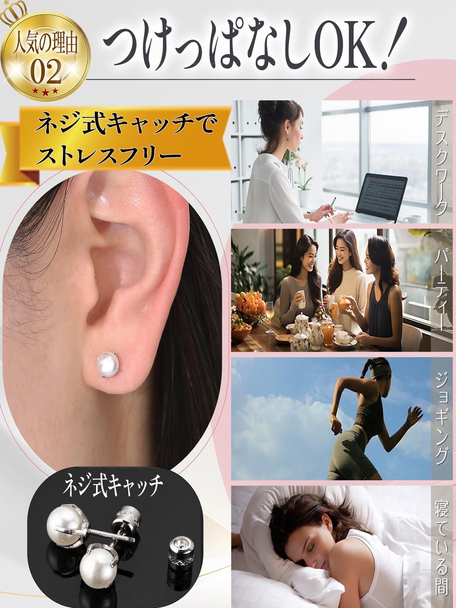 【ネジ式 ピアス つけっぱなし 両耳 2個セット】つけっぱなしでも安心のピアスが、両耳用に2個セットで登場。サージカルステンレス製で、ネジ式でしっかりと固定されるため、日常生活でも安心して使用できます。キャッチ部分が引っかからず、快適な着け心地を提供します
