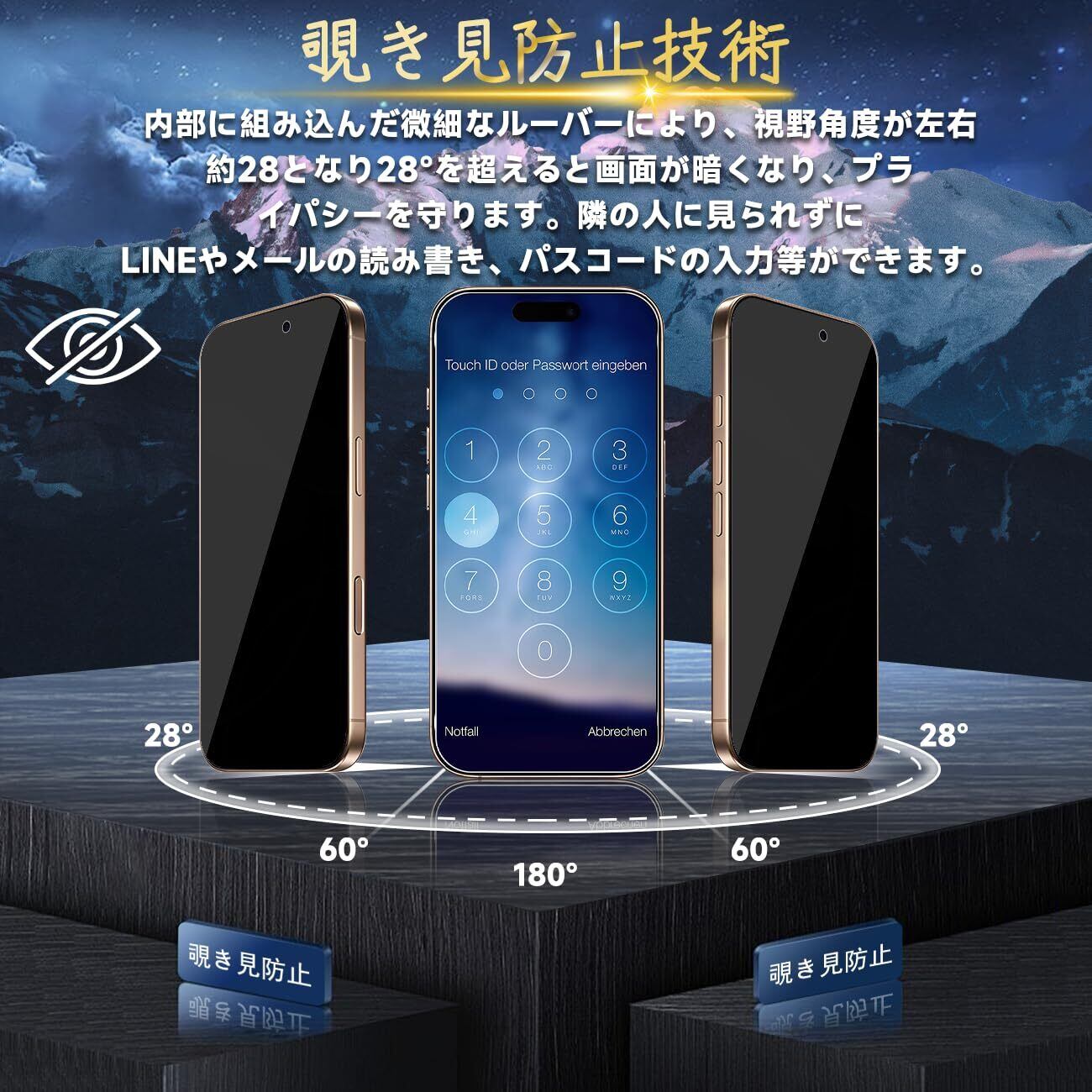 【梱包内容】 1×素敵な梱包箱 2×覗き見防止 強化ガラス保護フィルム 2xレンズ保護フィルム 1×取扱説明書 1×ガイド枠付き