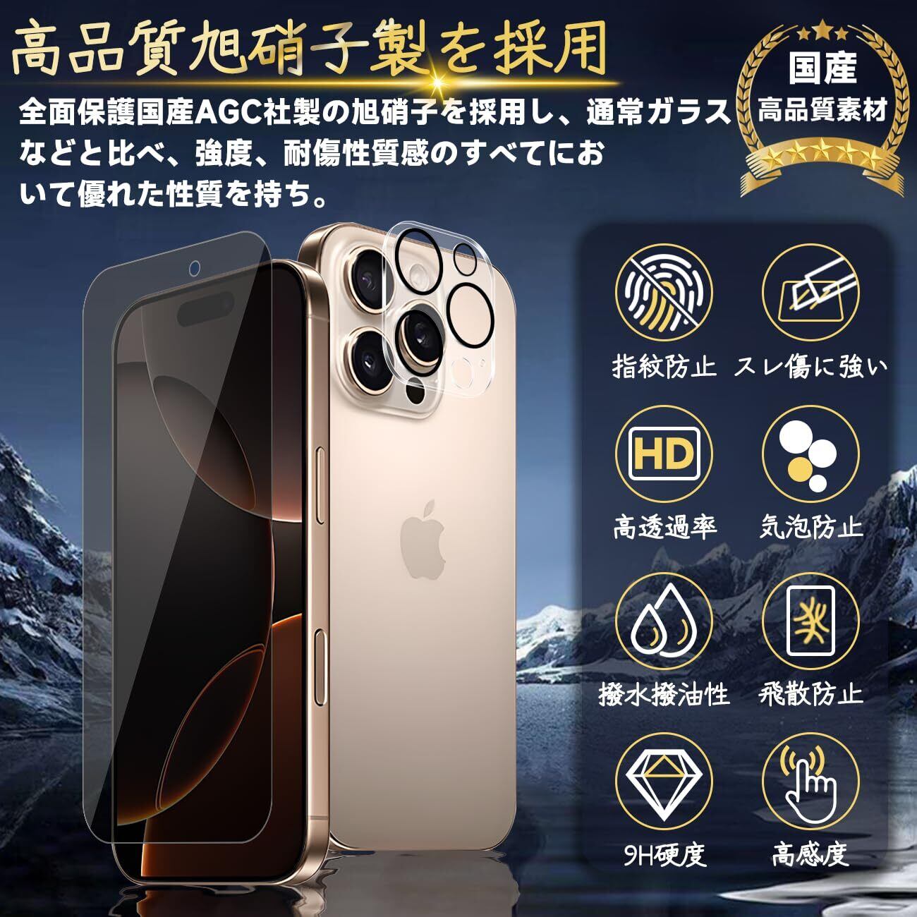 対応 iPhone 16 Pro ガラスフィルム apple iphone16 Pro ガイド枠付き 指紋防止 【2*覗き見防止 フィルム+2* レンズ保護フィルム+ 1*ガイド枠付き】国産旭硝子材質 アイフォン16 Pro 薄型 強化ガラス iphone16Pro 保護フィルム 高光沢 いpほね16 Pro 液晶 あいほん16Pro ガラス Touch対応 SENXLL-16ProF05