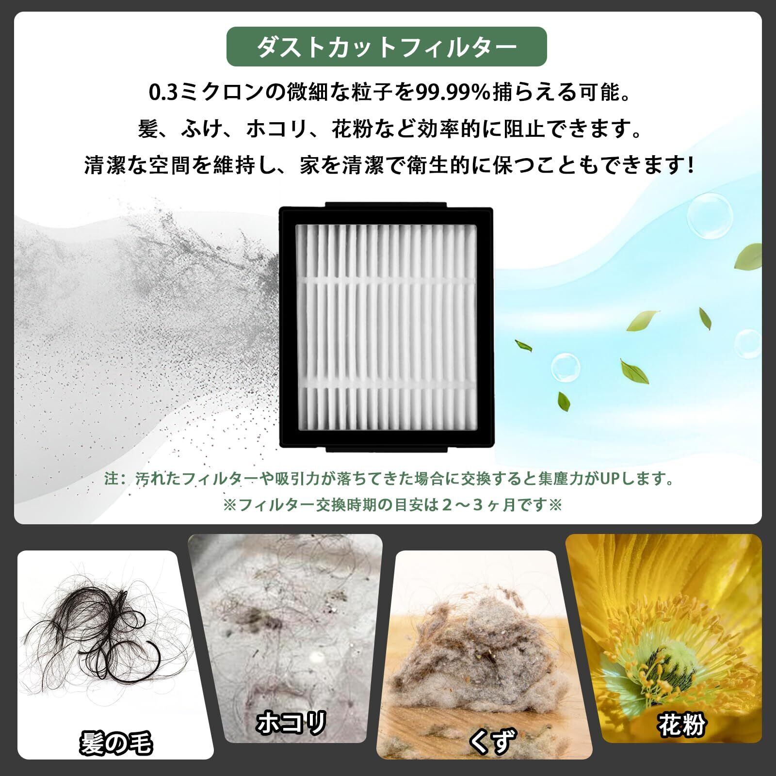 高効率でアレルゲンを捕捉:フィルターは、微細な粒子や花粉、バクテリアを99%以上キャッチ。アレルギー対策に最適で、家族に健康的な環境を提供します。