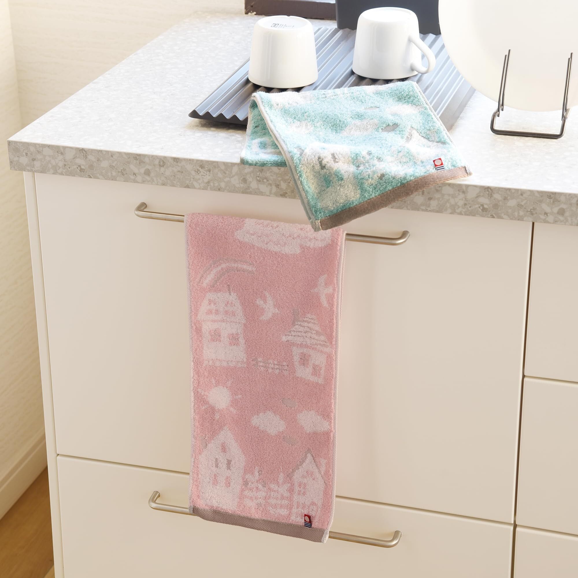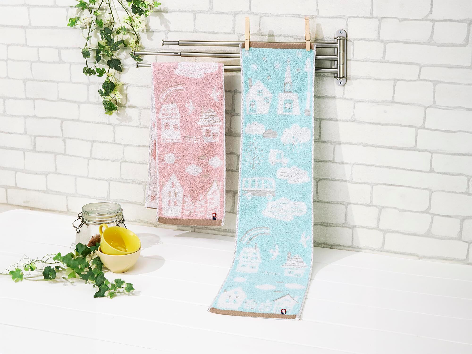 【スリムサイズのタオル】トイレやキッチンのおてふき用として使いやすい、タオルハンガーに折らずに掛けられるスリムサイズ。通常のフェイスタオルとしてもお使いいただける、コンパクトで機能的なタオルです。
