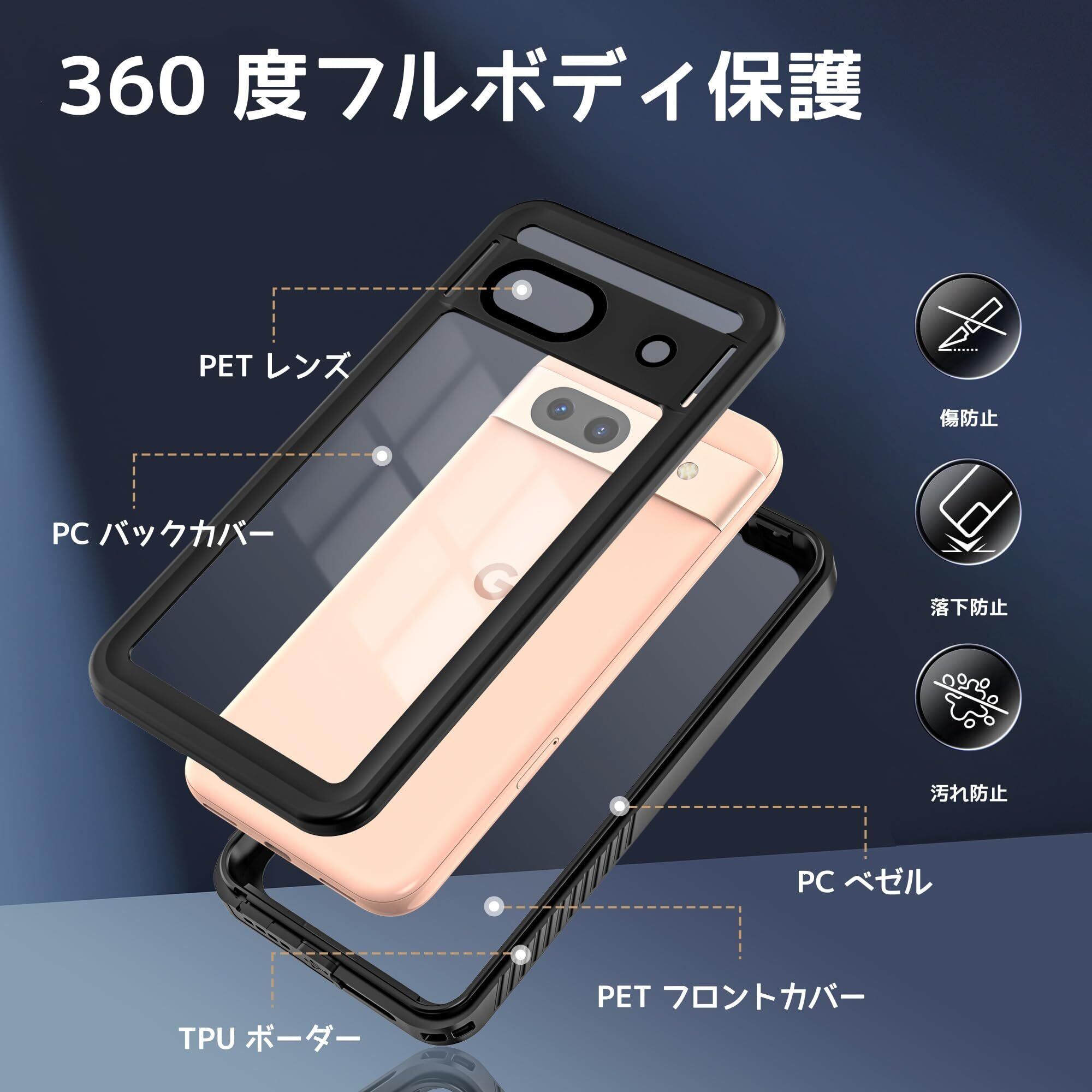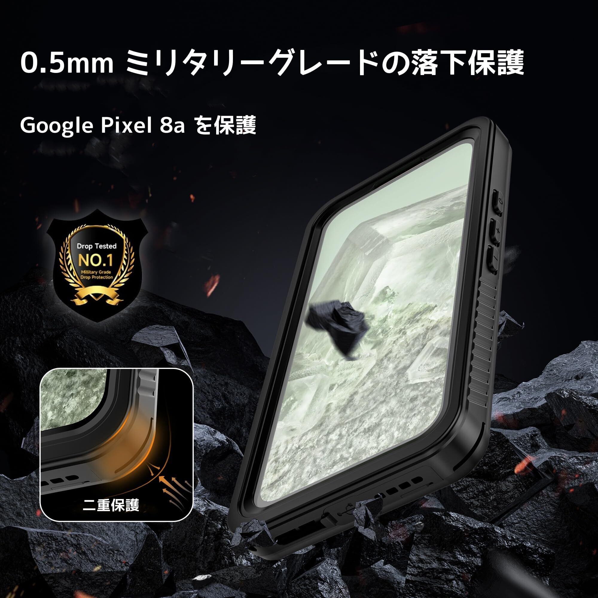 Kawasina Google Pixel 8a 用 ケース 防水 耐衝撃 米軍MIL規格取得 フェイスID認証 超軽量 360°全面保護 グーグル ピクセル 8a 高耐久 ケース Qi充電対応 防雪 防塵 滑り止め ブラック
