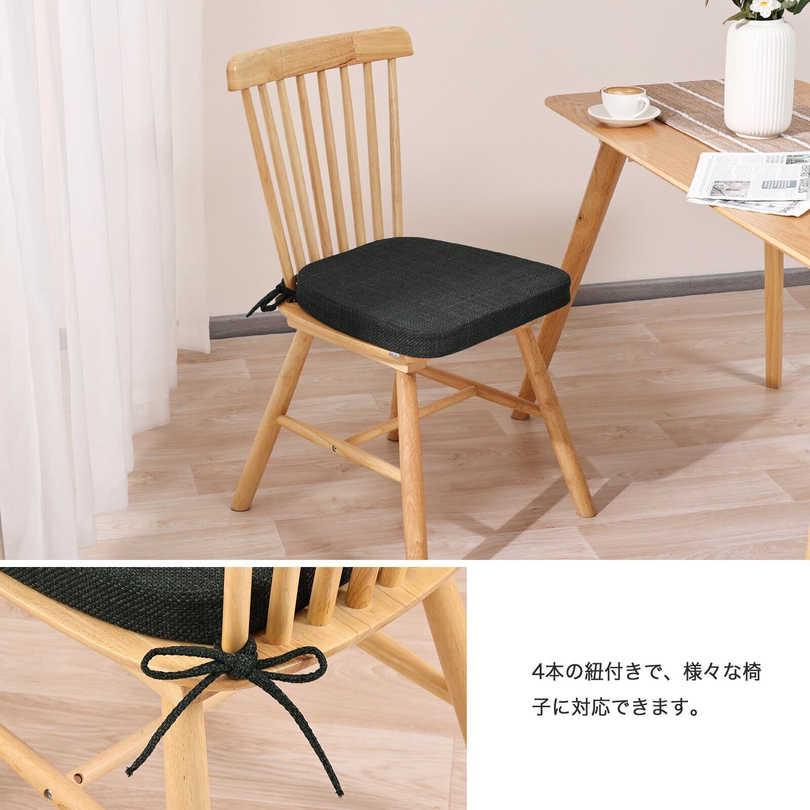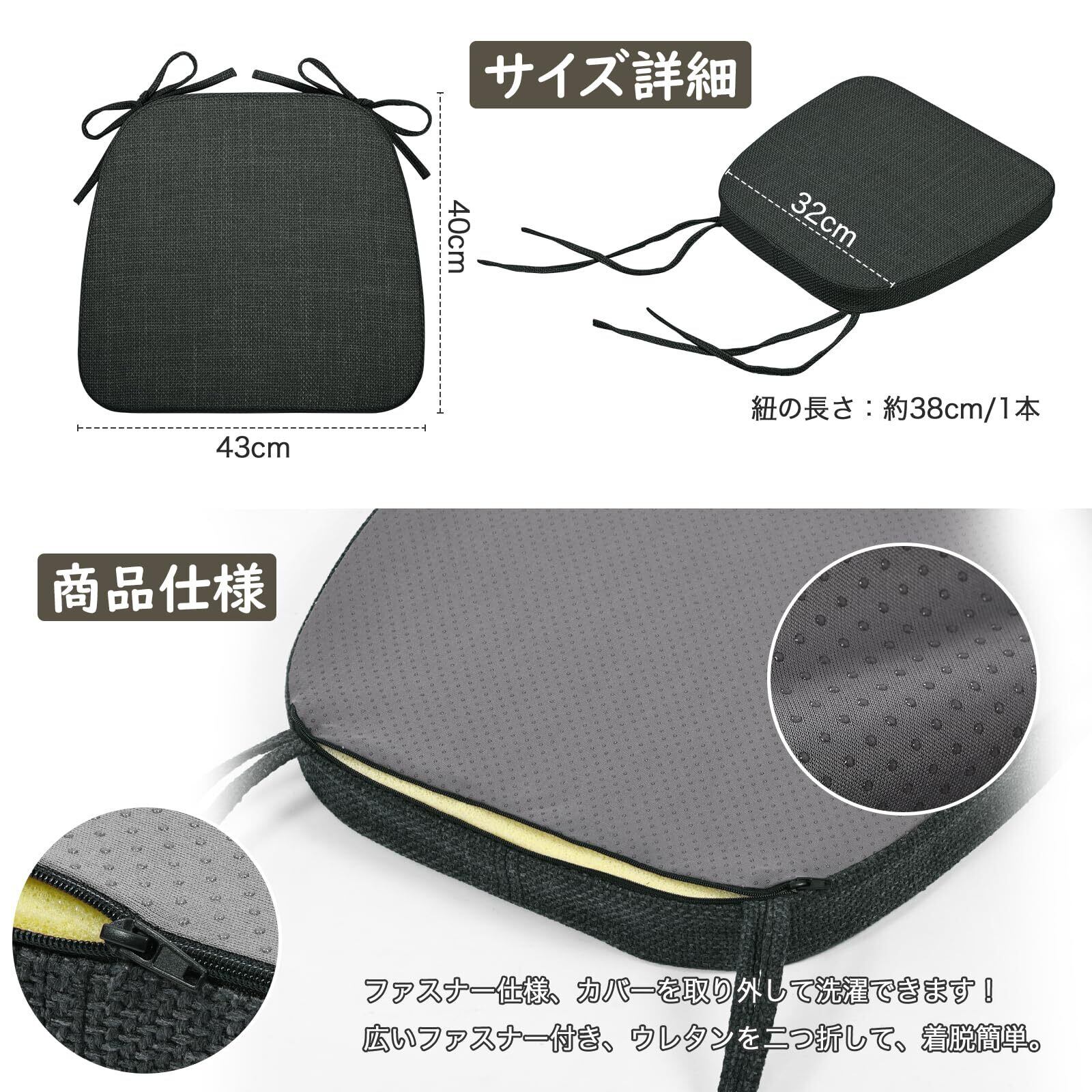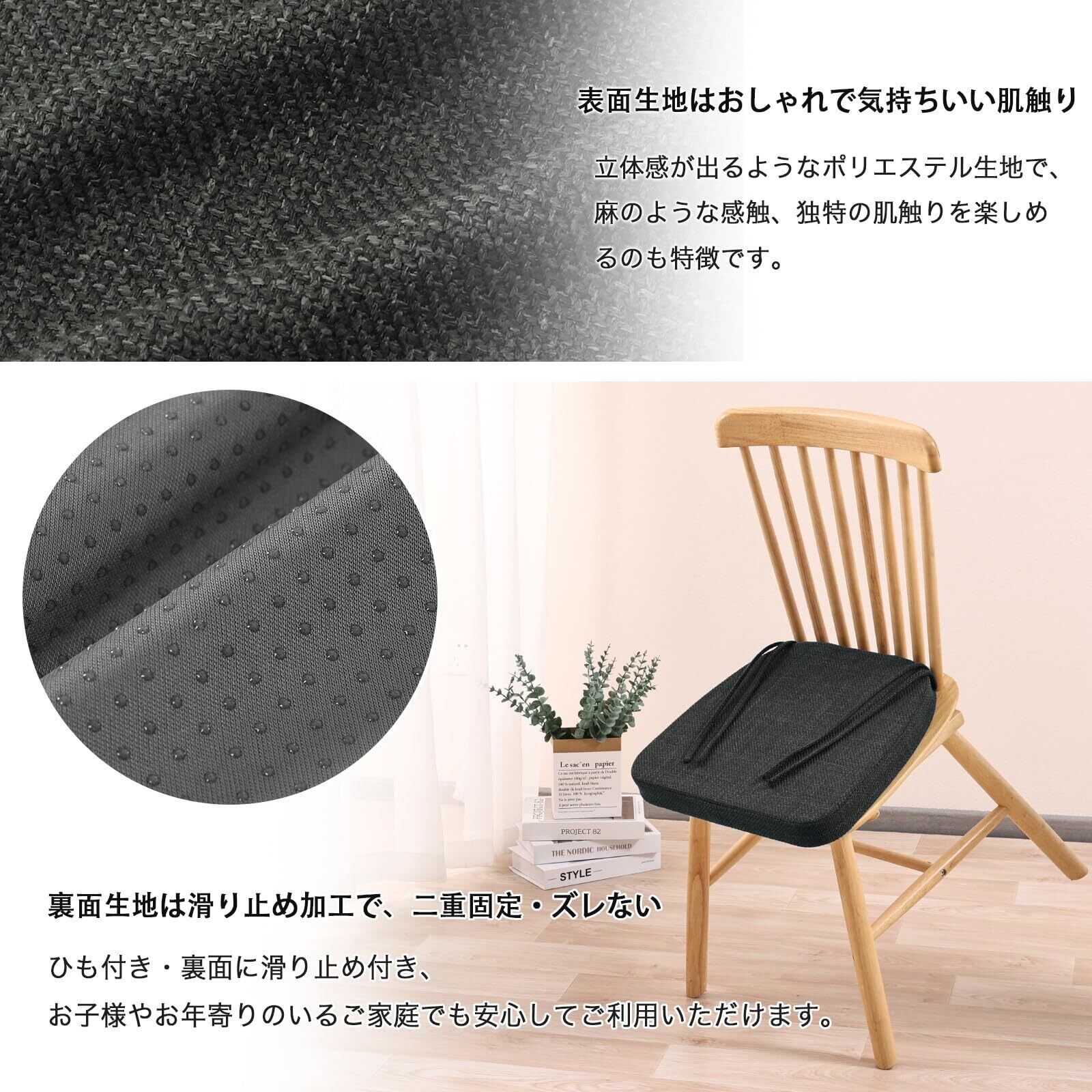 【裏地滑り止め加工及び4本の紐付き】裏面に滑り止め付き、立ったり座ったりした際のズレ落ち防止可能です。また、4本の紐付きで、様々な椅子に対応できます。ひも付き・裏面に滑り止め付きのデザインで、お子様やお年寄りのいるご家庭でも安心してご利用いただけます。
