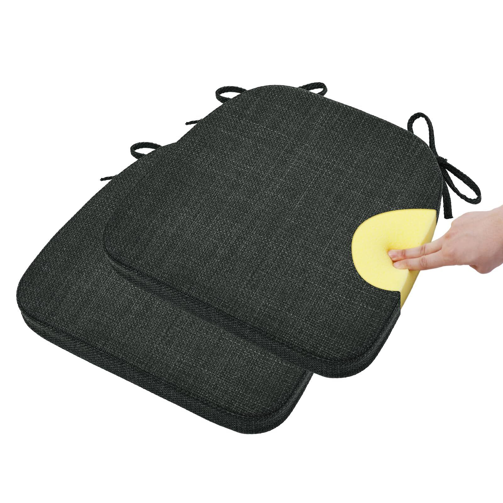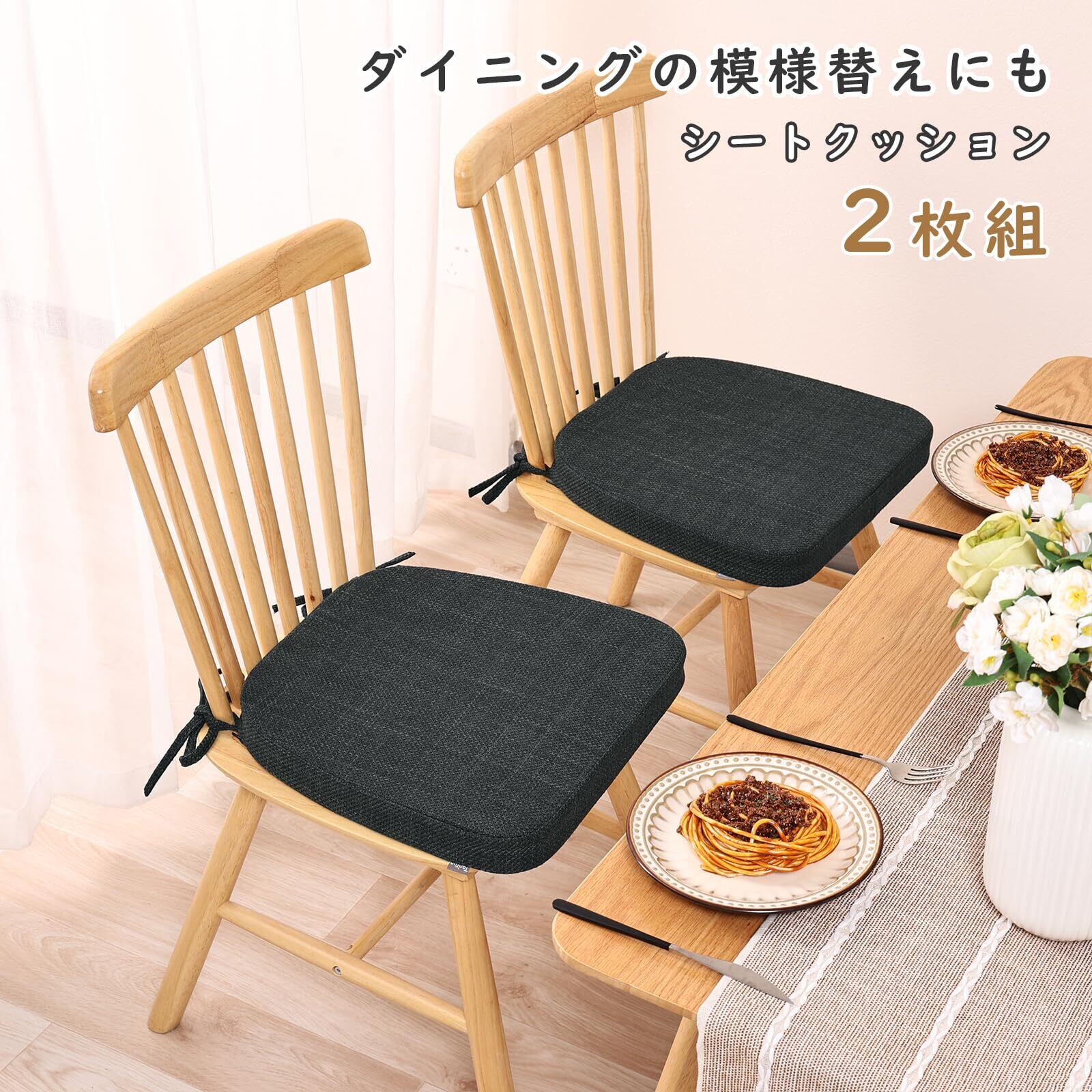 TanYoo 座布団 クッション 椅子用クッション ぷりぷり弾力性高反発 チェアパッド ダイニングチェアクッション 馬蹄型座布団 フロアクッション お尻が痛くならないクッション 43×40×4cm厚み 滑り止め ひも付きざぶとん 2枚セット (ブラック)