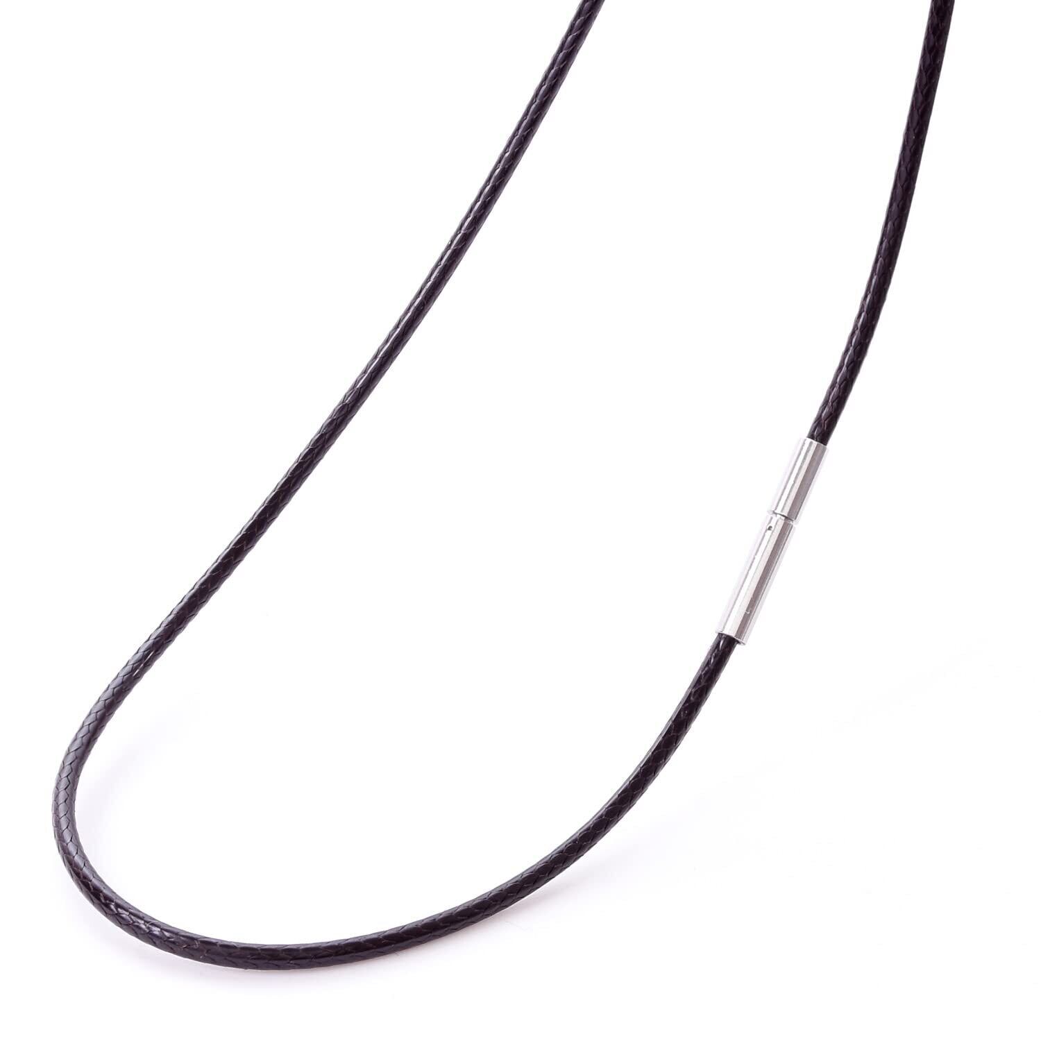 【選べるカラーサイズ】カラーは人気のブラックとブラウンをご用意しました。コードは細めの2mmと太めの3mmです。長さは40cm・45cm・50cm・55cmです。紐ネックレスはどんなファッションにも合わせやすく、太さや長さを変えるだけでも見栄えが違うのでコーディネートが楽しくなります。男性・女性問わずに使えるシンプルなデザインなのでプレゼントにも最適です。