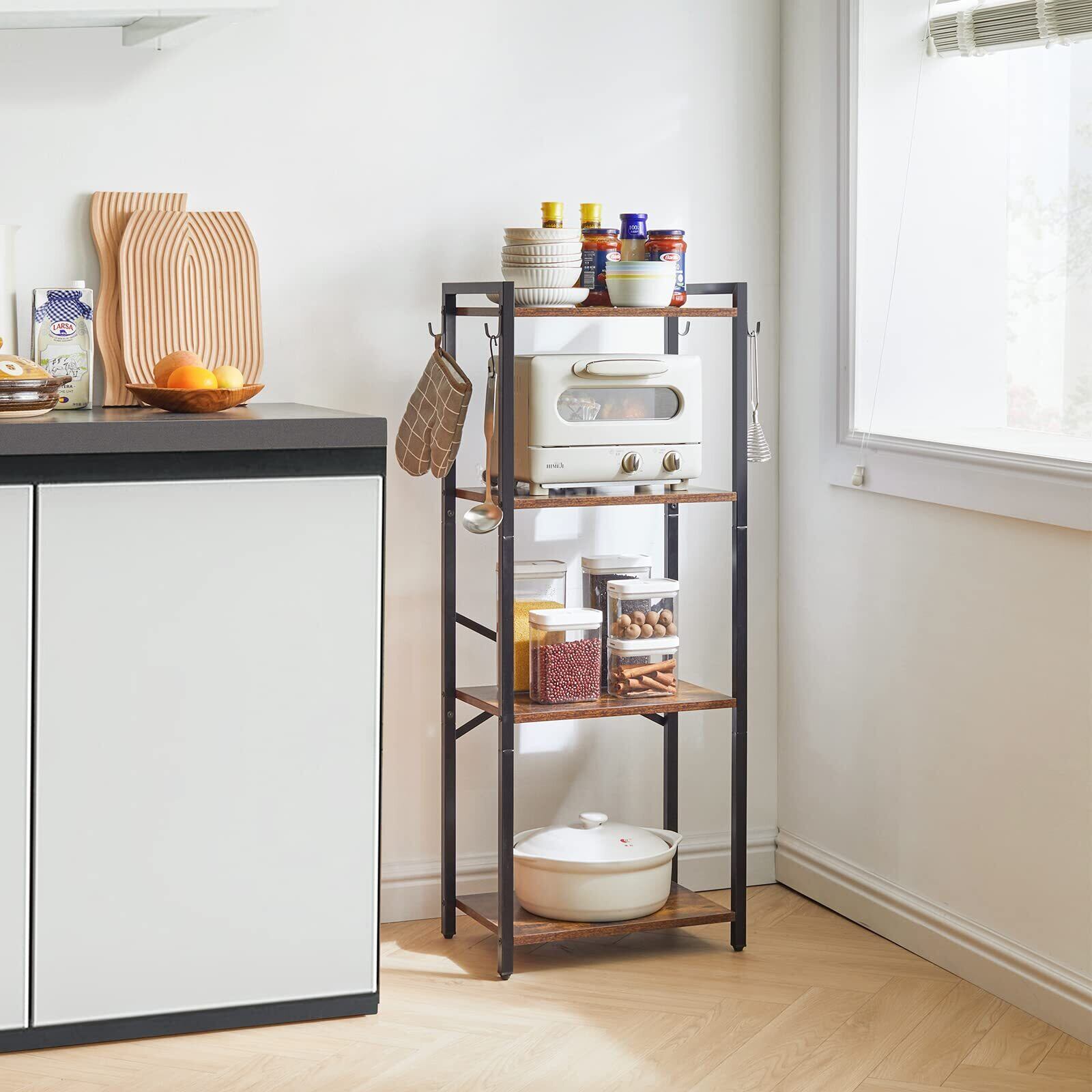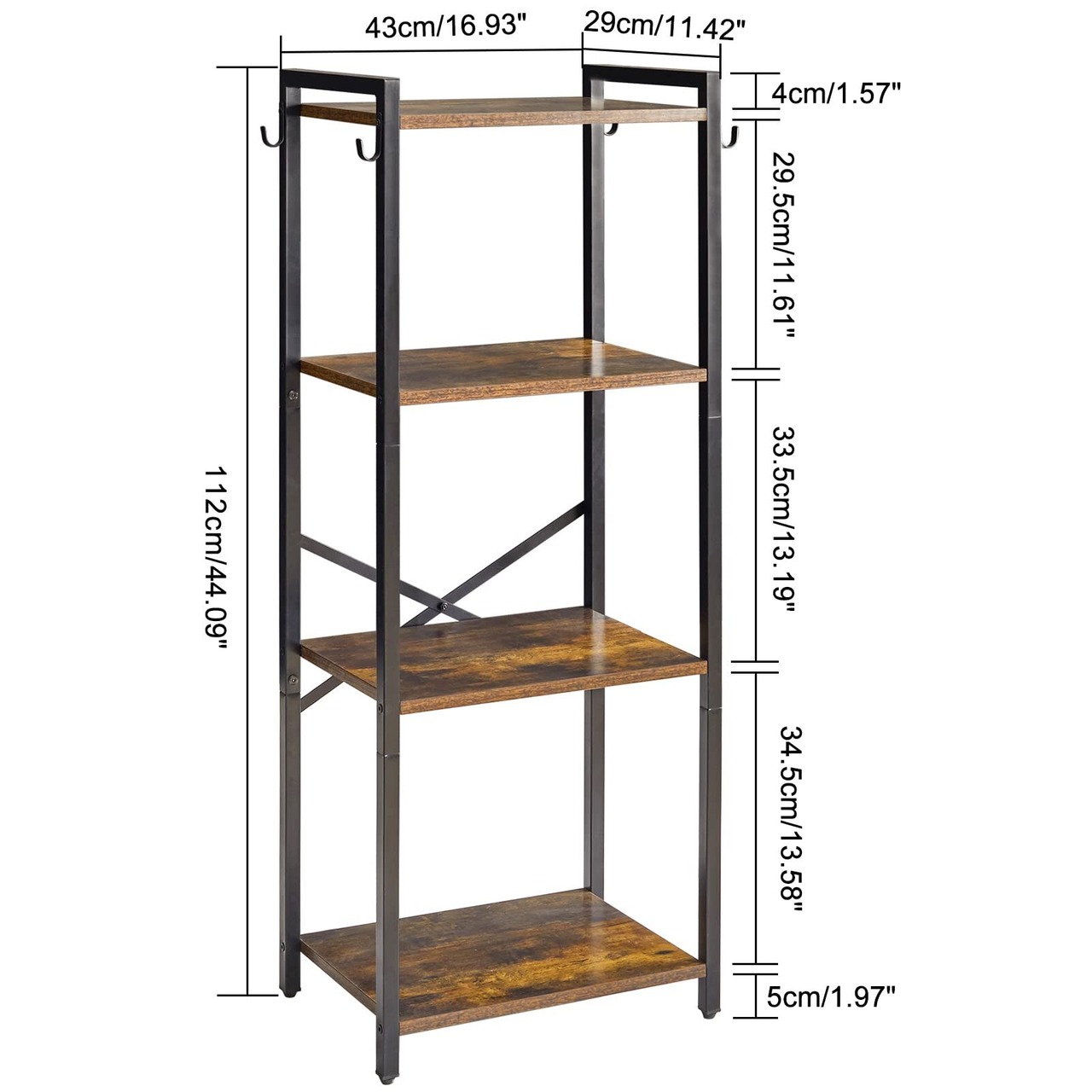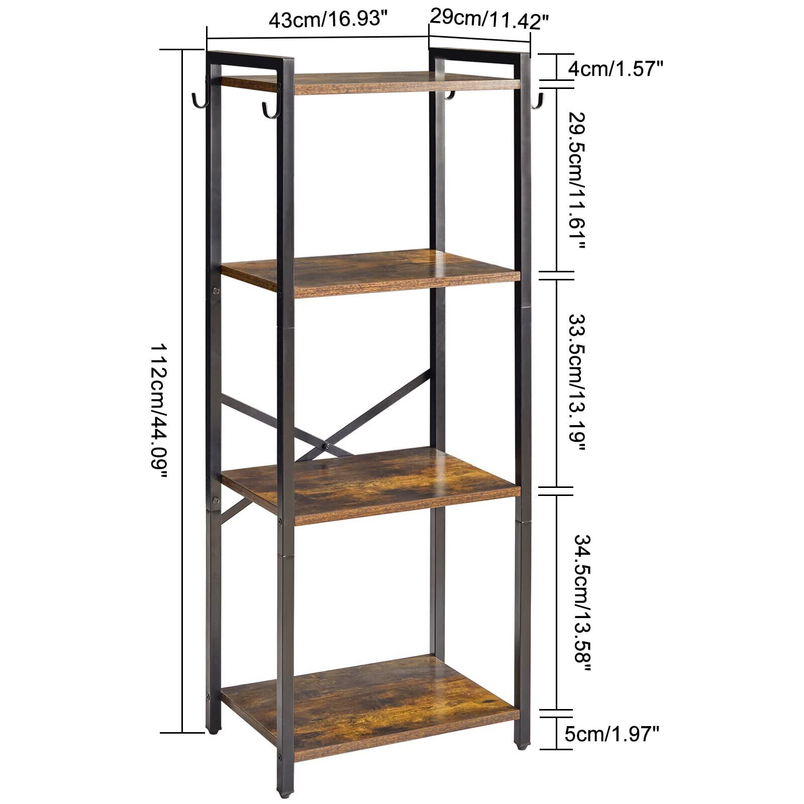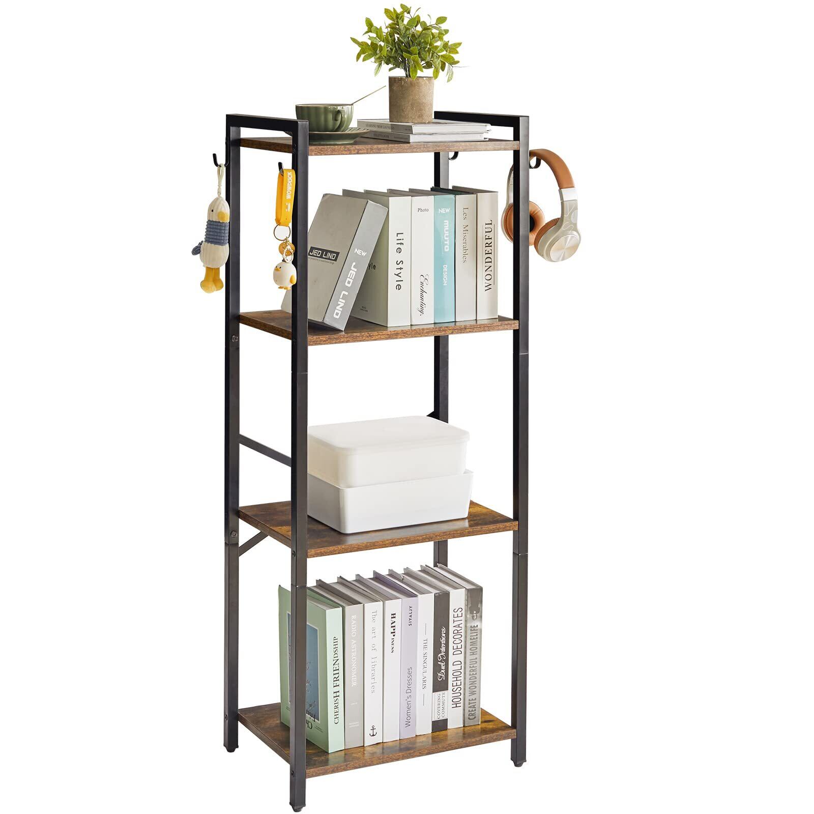 YMYNY本棚 4層収納ラック プラントラック スチールフレーム付き収納ラック リビングルーム オフィス 書斎 廊下 インダストリアルスタイル 素朴な茶色と黒 JPHBC004H