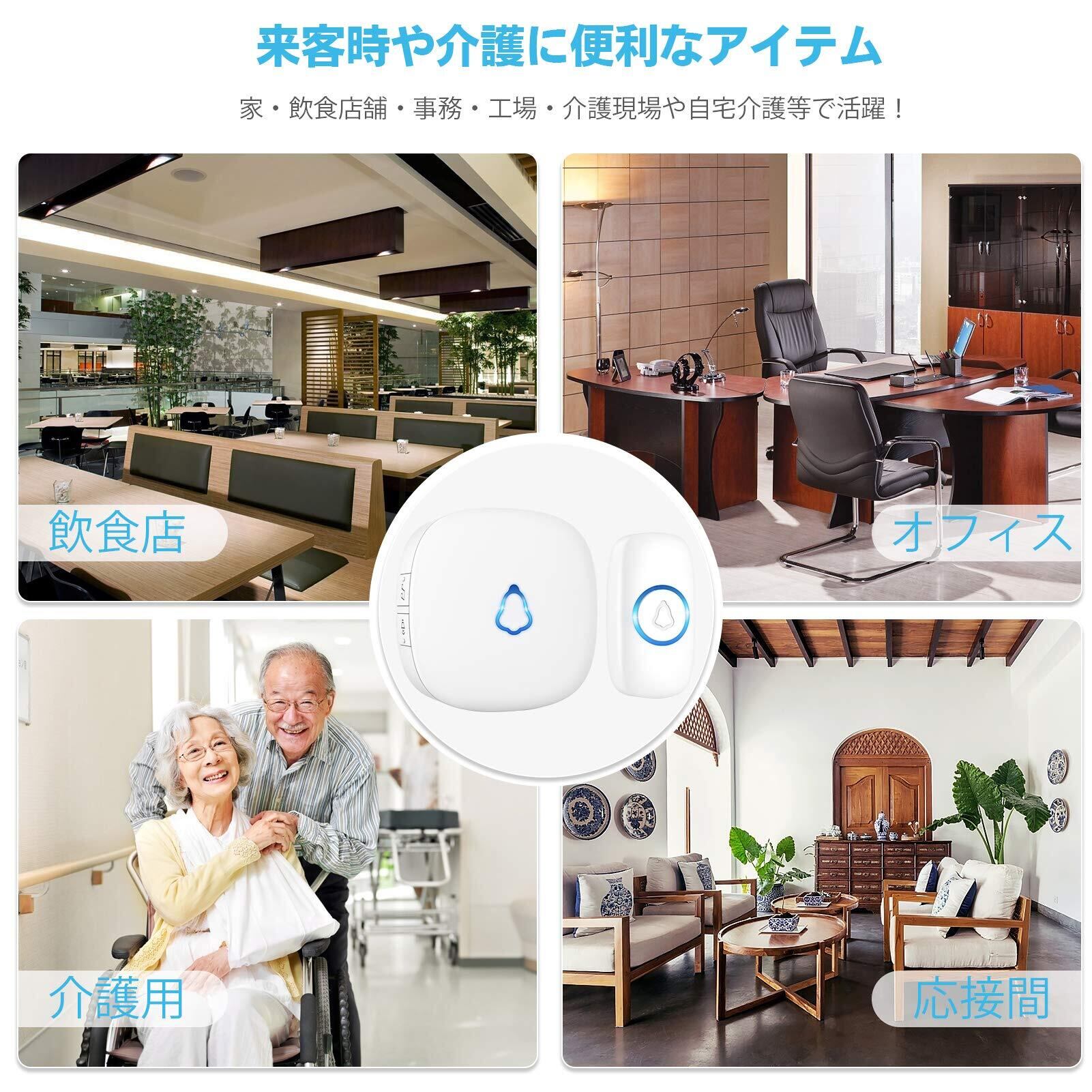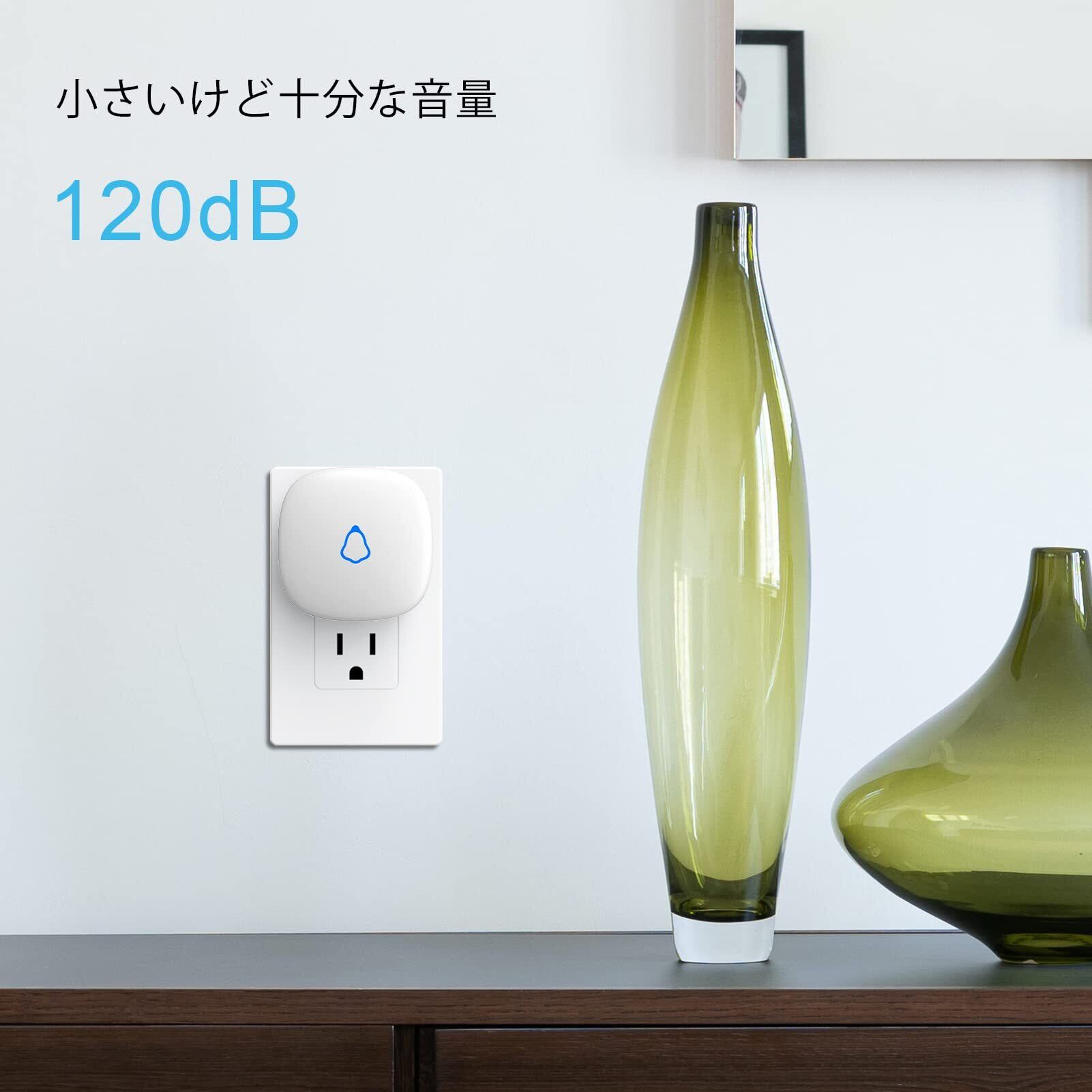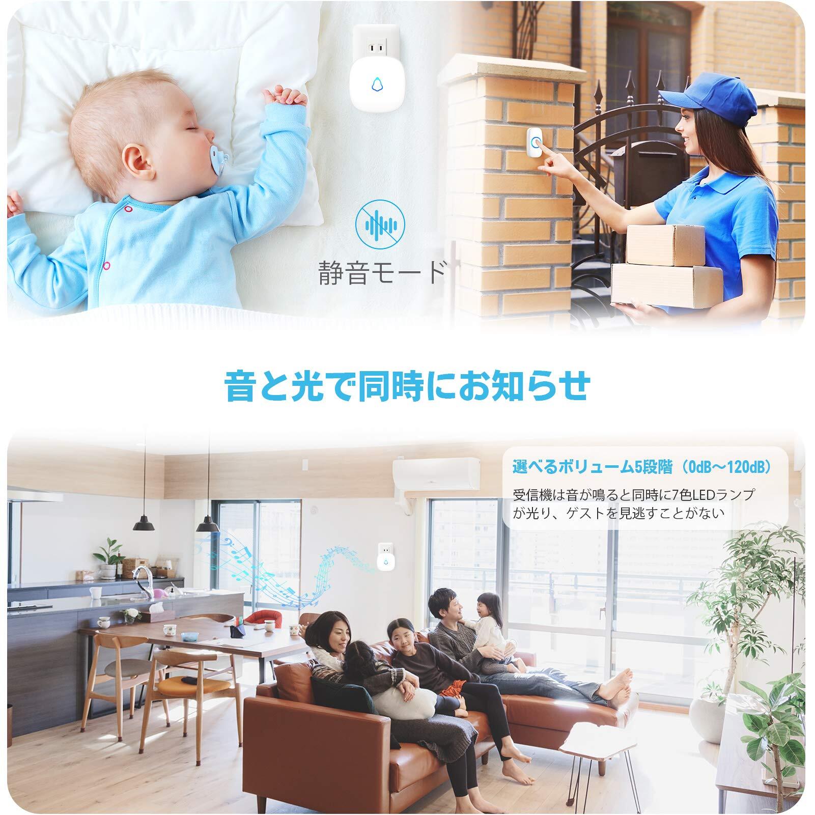 SECRUI ワイヤレスチャイム 玄関チャイム 送信機 電池式 防水 5段階音量調節 58メロディー & カラフルなLED点滅 300mの無線範囲 インターホン ワイヤレス 工事不要 介護用 家庭用-ホワイト
