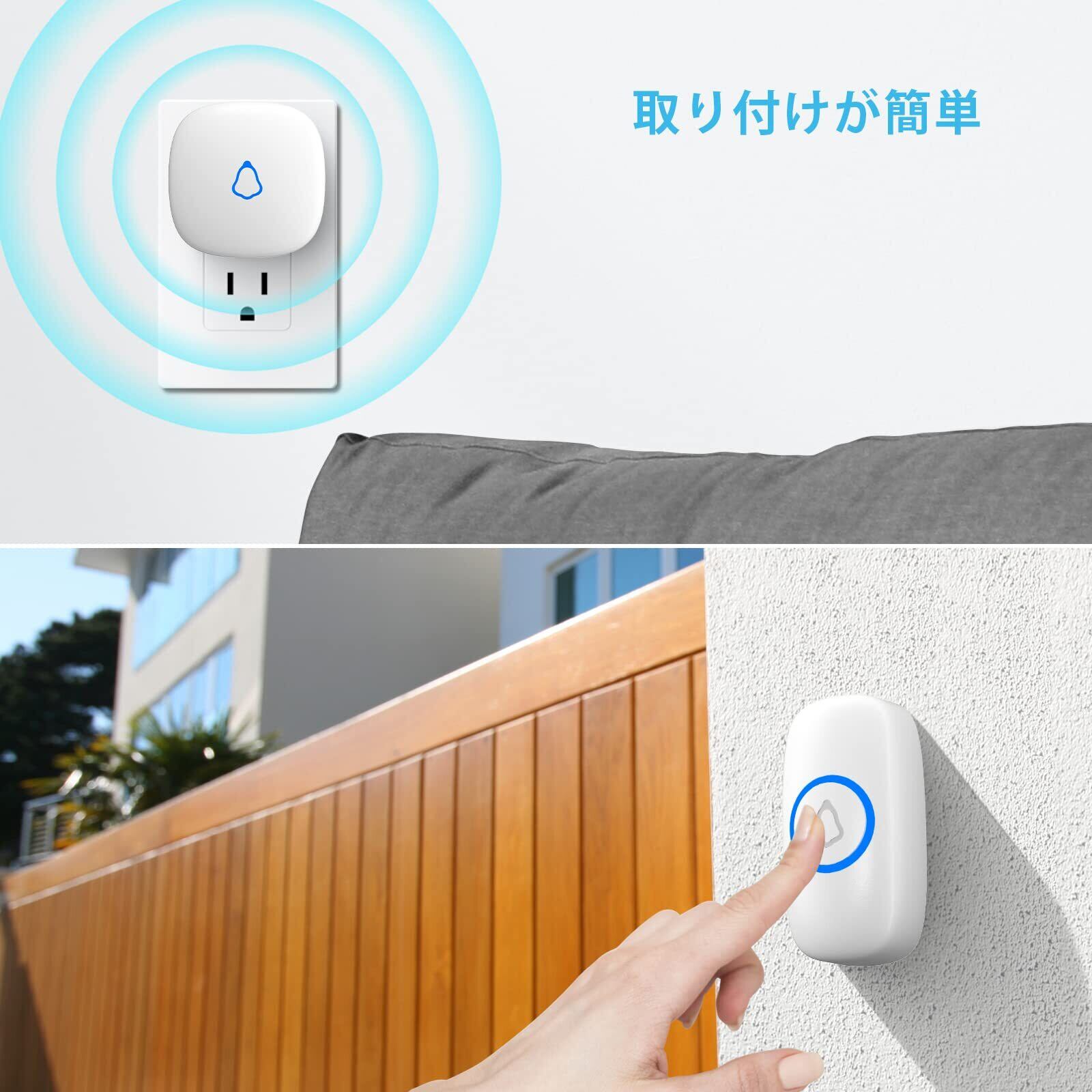 【設置が簡単】玄関チャイム発送前にペアリングされています。1分とかからず設置できるので、使用に際して配線したり電気技師を呼んだりする必要はありません。受信機をソケットに差し込むだけで、すぐに使い始められます。