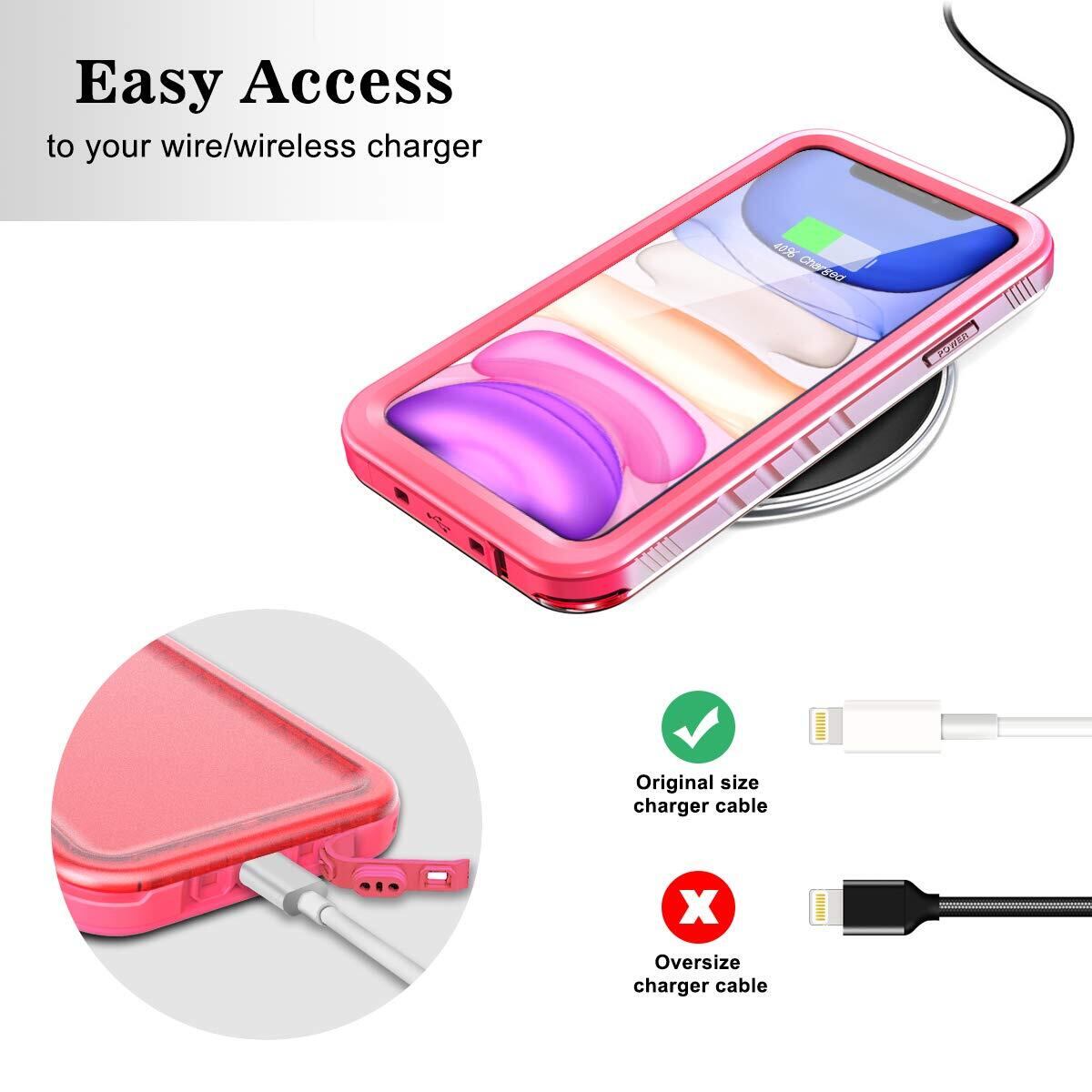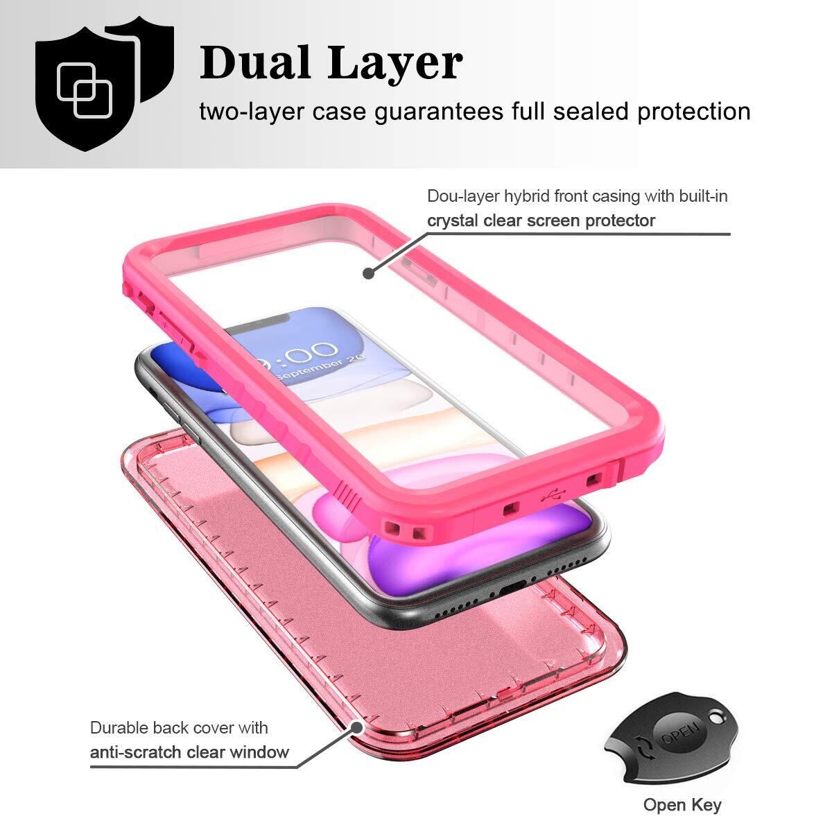 SPORTLINK iPhone 11 用 防水ケース- iPhone 11 ケース 完全 耐衝撃 防塵 IP68防水規格取得 防雪 防塵 耐衝撃 360°全面保護 フェイスID 認証 無線充電対応 操作便利 超薄 小型 ストラップ付き 泳ぐ アイフォン 11 カバー お風呂など適用 6.1インチ(ピンク)