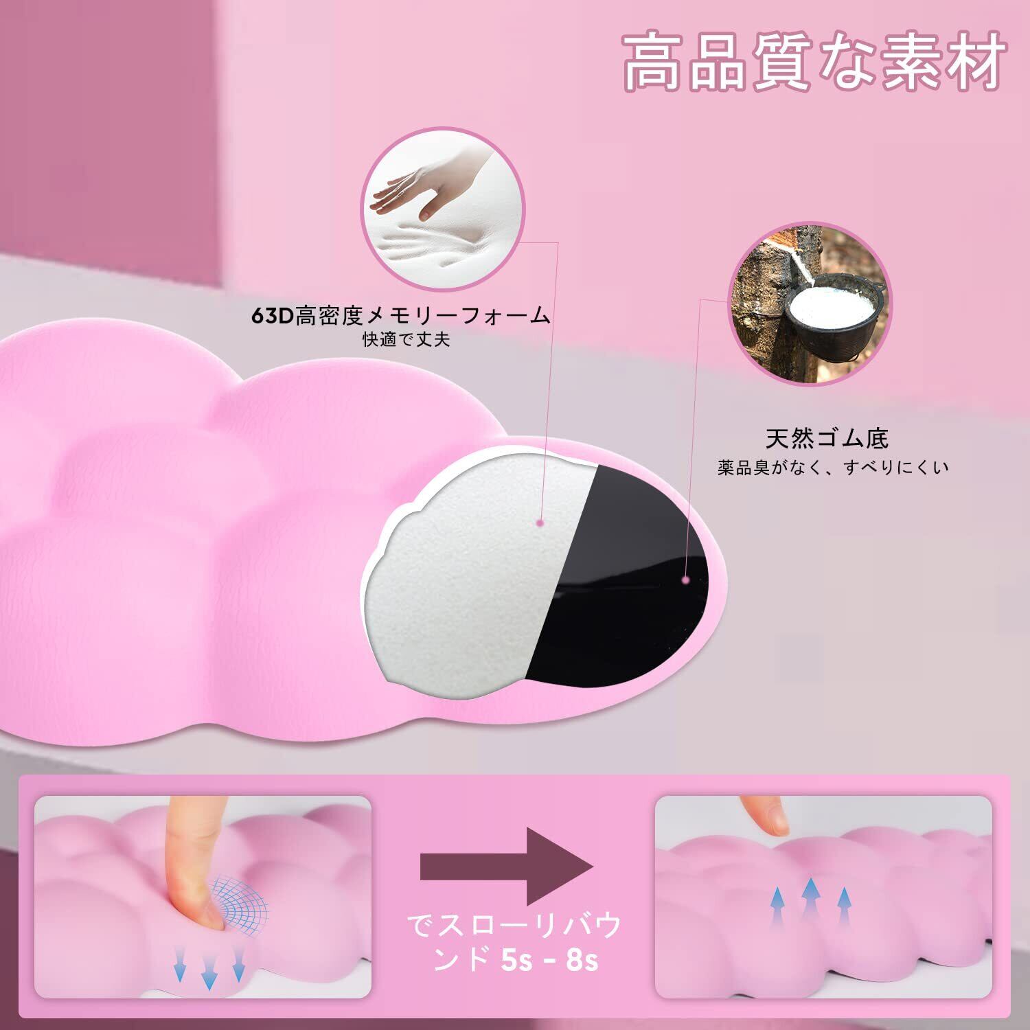 キーボードリストレスト 白 パソコンアームレスト クラウドハンドレスト 手首 クッション 雲状パームレスト 疲労を軽減 柔らかい素材 人間工学に基づいた かわいいデスク/Mac/コンピューターゲーム/ラップトップに適しています (雲状-ピンク)