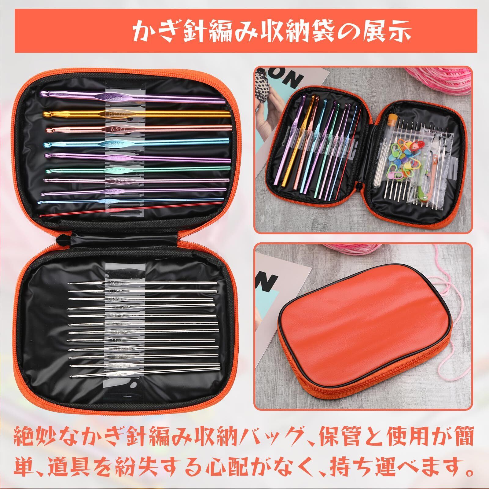収納バッグのデザイン:かぎ針編みフックセット用の収納バッグを用意しました。 かぎ針編みのアクセサリーを入れることができ、スペースを取らず、持ち運びも簡単です