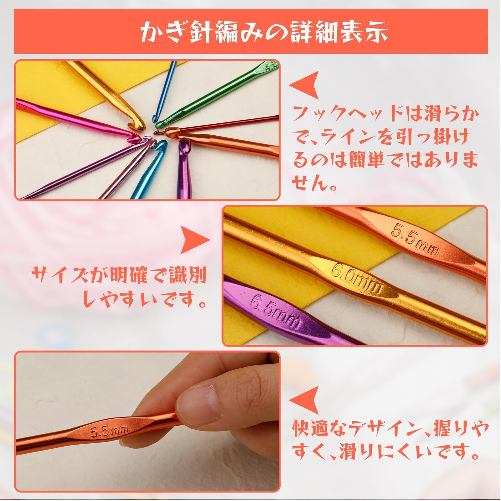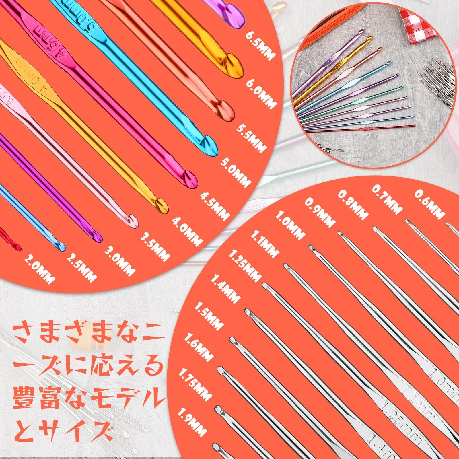 スムーズなかぎ針編みフックコンプリートセット: かぎ針編みの針が楽に滑り、きれいな仕上がりプロジェクトを作成し、分割糸の引っ掛かりを防ぎます。 完全なかぎ針編みセットは、かぎ針編みのさまざまな要求を満たすことができます