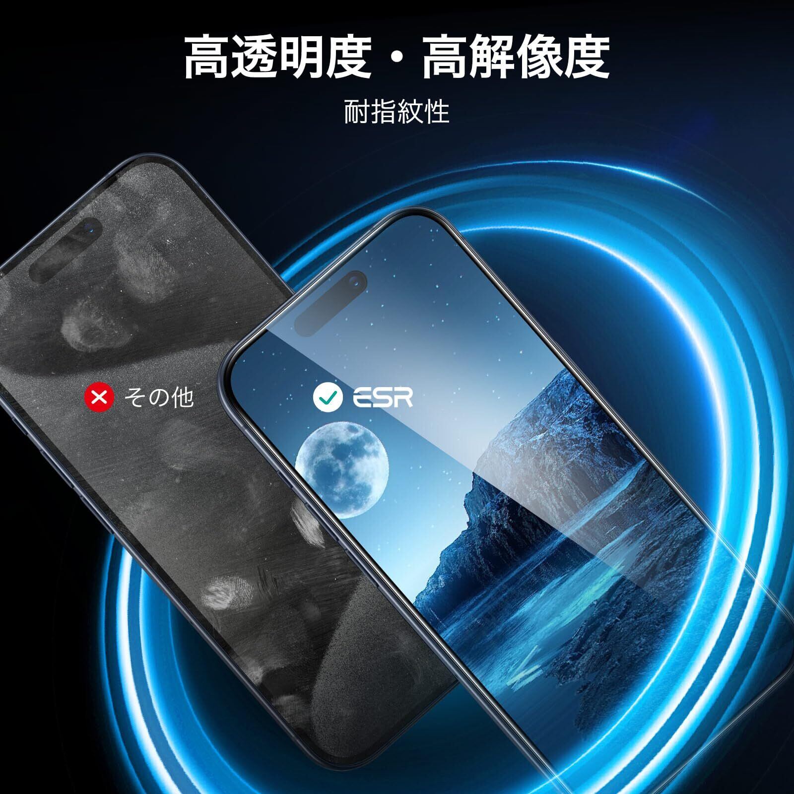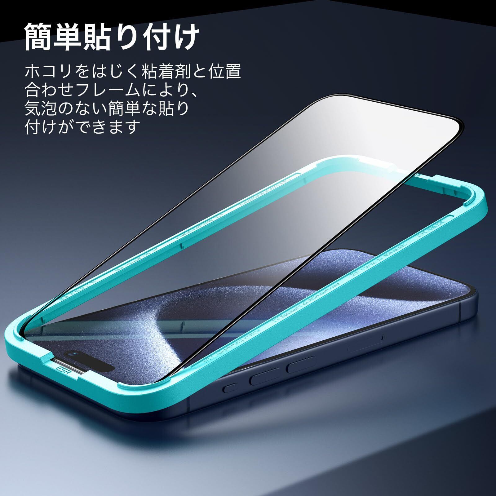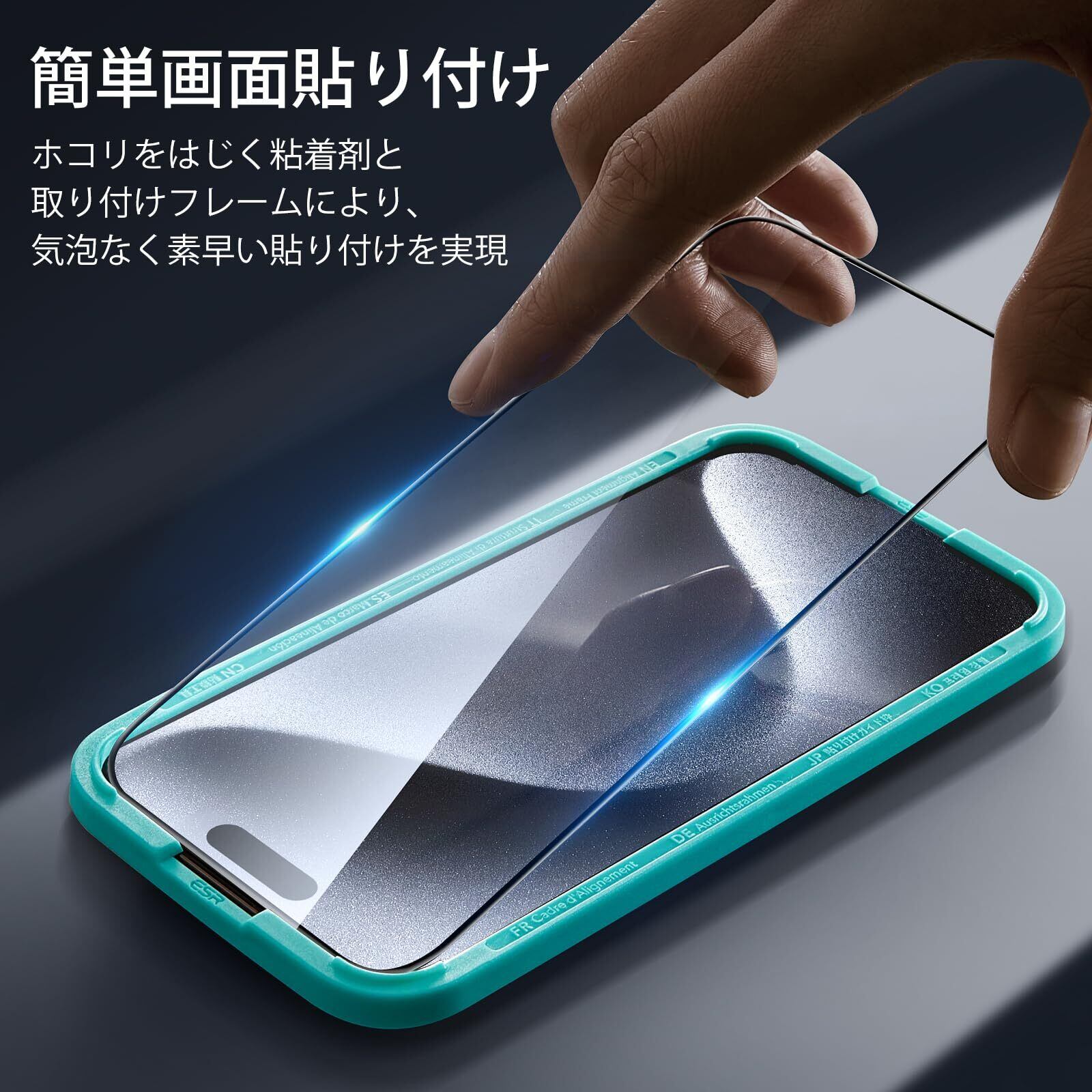 【強化ガラス・3枚入り】ESR iPhone 15 Pro Max ガラスフィルム 強化ガラス保護フィルム ガイド枠付き 3枚セット 2.5Dカーブエッジ フルカバー 米軍MIL規格の保護 傷に強い いPhone15promaxガラスフィルム(6.7 インチ)