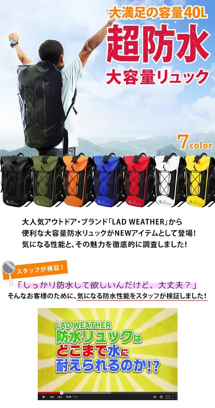 [ラドウェザー] 防水バッグ 完全防水 リュック 大容量 40L 防水 メンズ スポーツバッグ