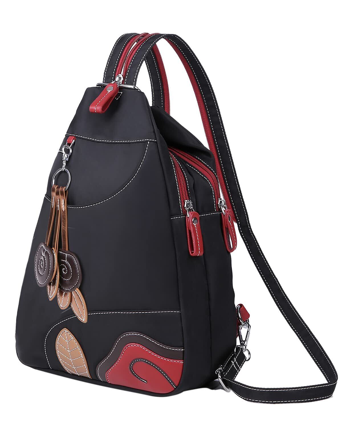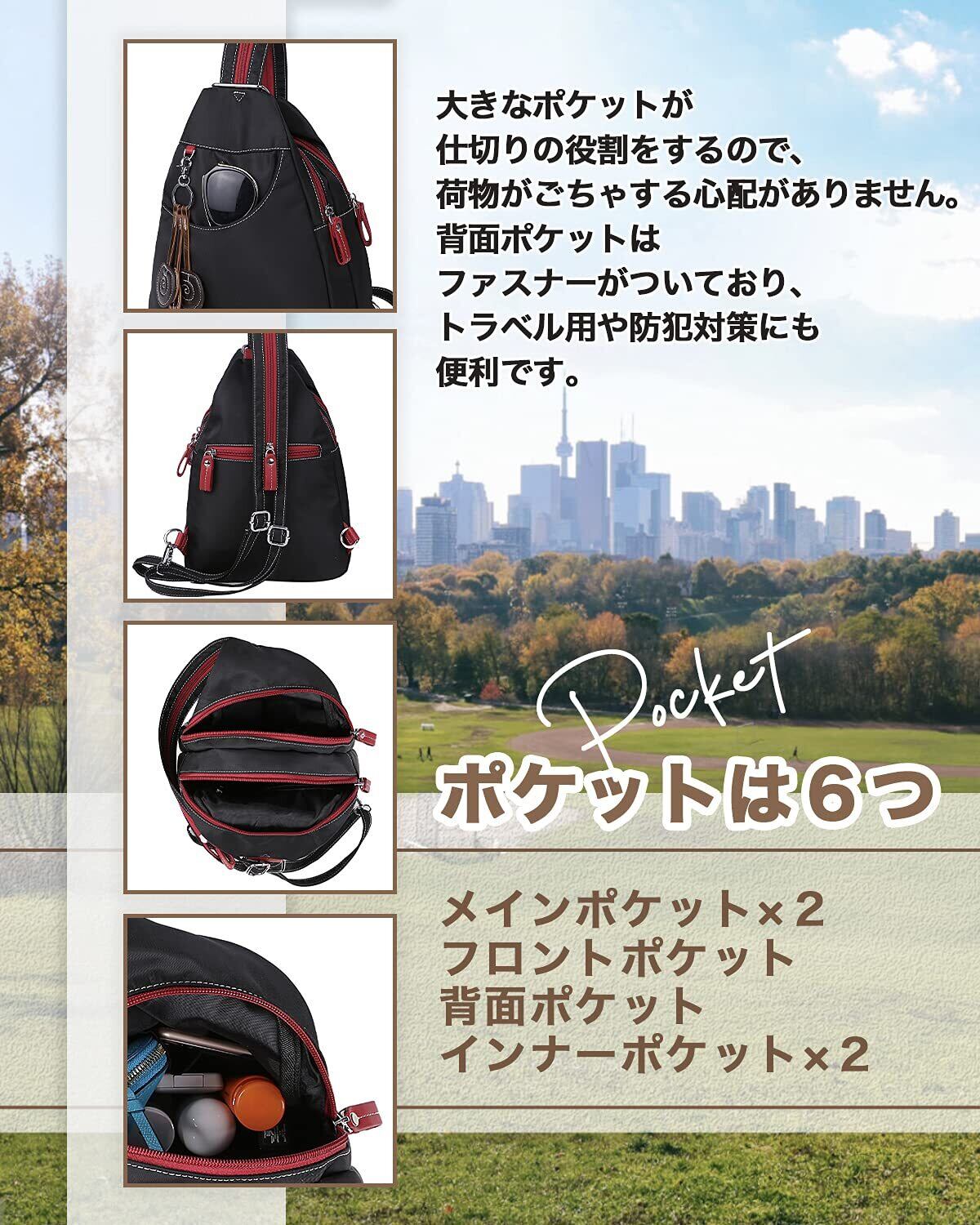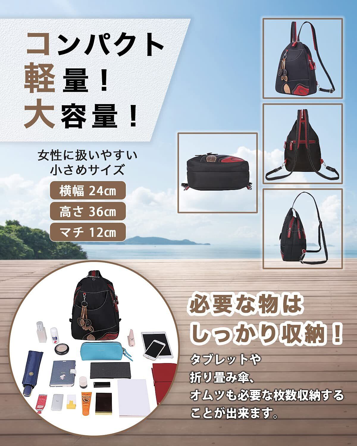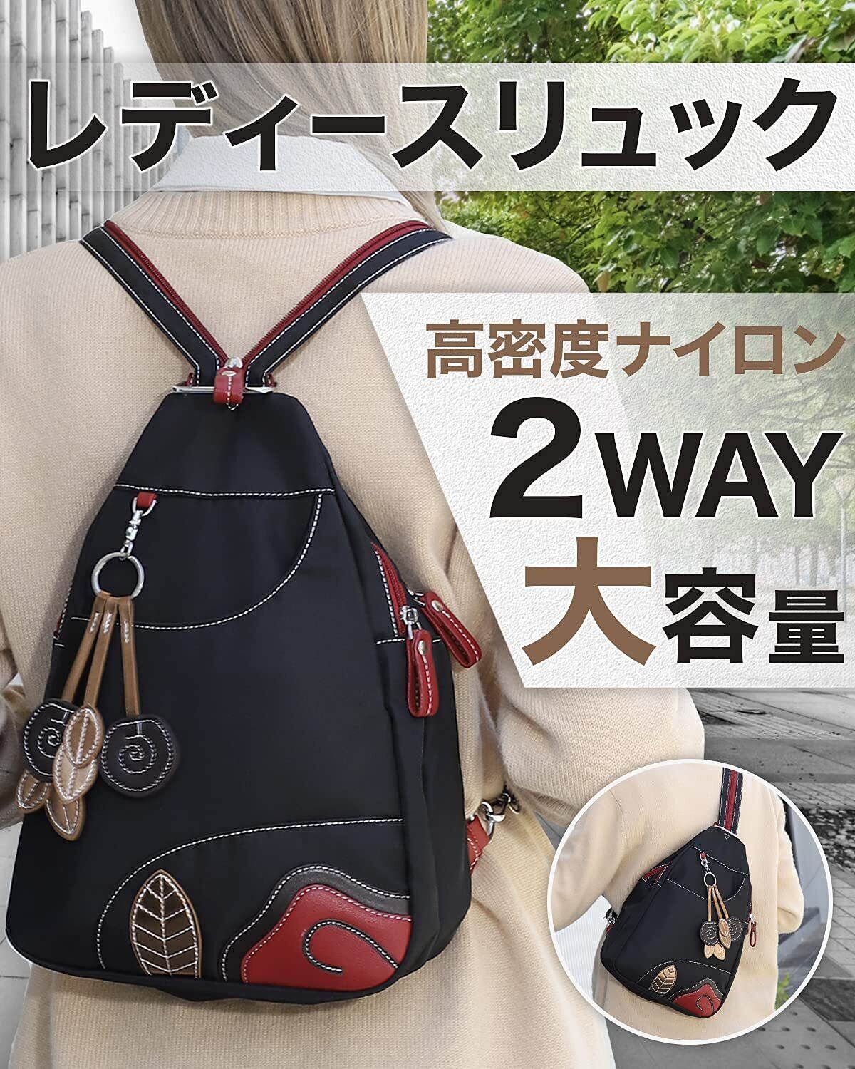 [ケーエルユー] リュックサック レディース バックパック ボディバッグ 斜めがけ 軽量 ナイロン 防水 (ブラック)