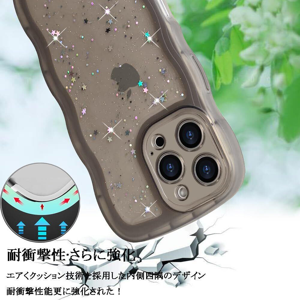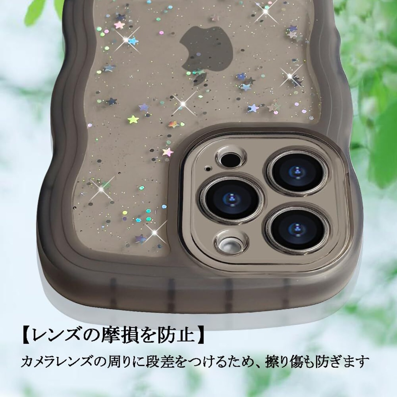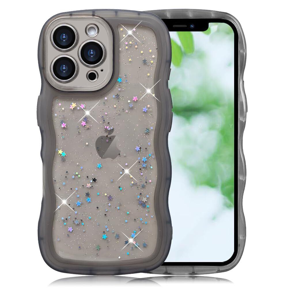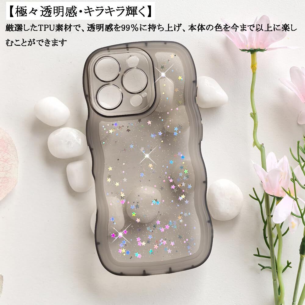 YUYIB スマホケース 対応 iPhone16 Pro ケース クリア キラキラ かわいい tpuソフトケース 薄型 傷防止背面 滑り止め 指紋防止 ストラップホール付き スマホケース アイホン16プロ カバー (透明黒, 16 Pro)