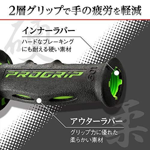 デイトナ(Daytona) PROGRIP(プログリップ) バイク用 グリップ ハンドル径φ22.2用 120mm 耐振ゲル エンド貫通 601タイプ グリーン 98027
