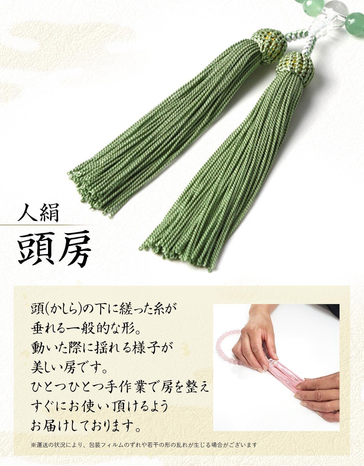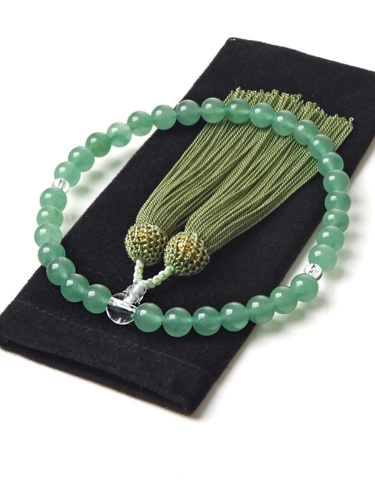 EsuonHappiness 数珠 女性用 頭房 京都職人手作り 葬式 葬儀 数珠袋付き 天然素材 8mm [印度翡翠/本水晶]
