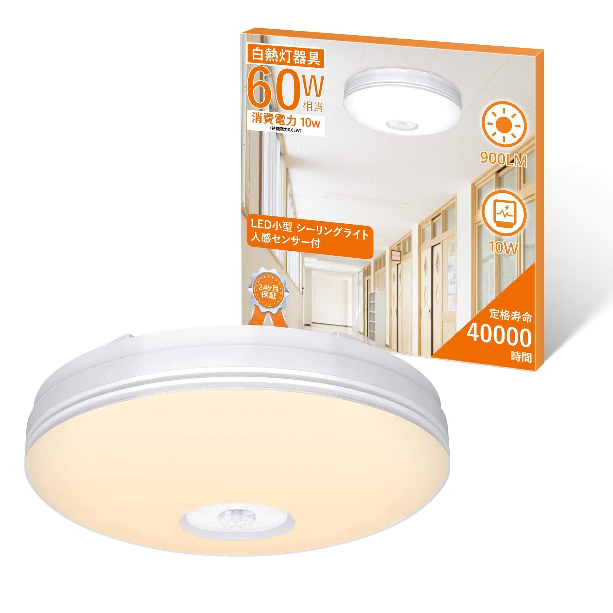 aurogeek LED 人感センサー ライト 4~6畳 小型 人感センサー付 照明器具 天井 シーリング 内玄関 廊下灯 天井照明 簡単取付 900lm (電球色)