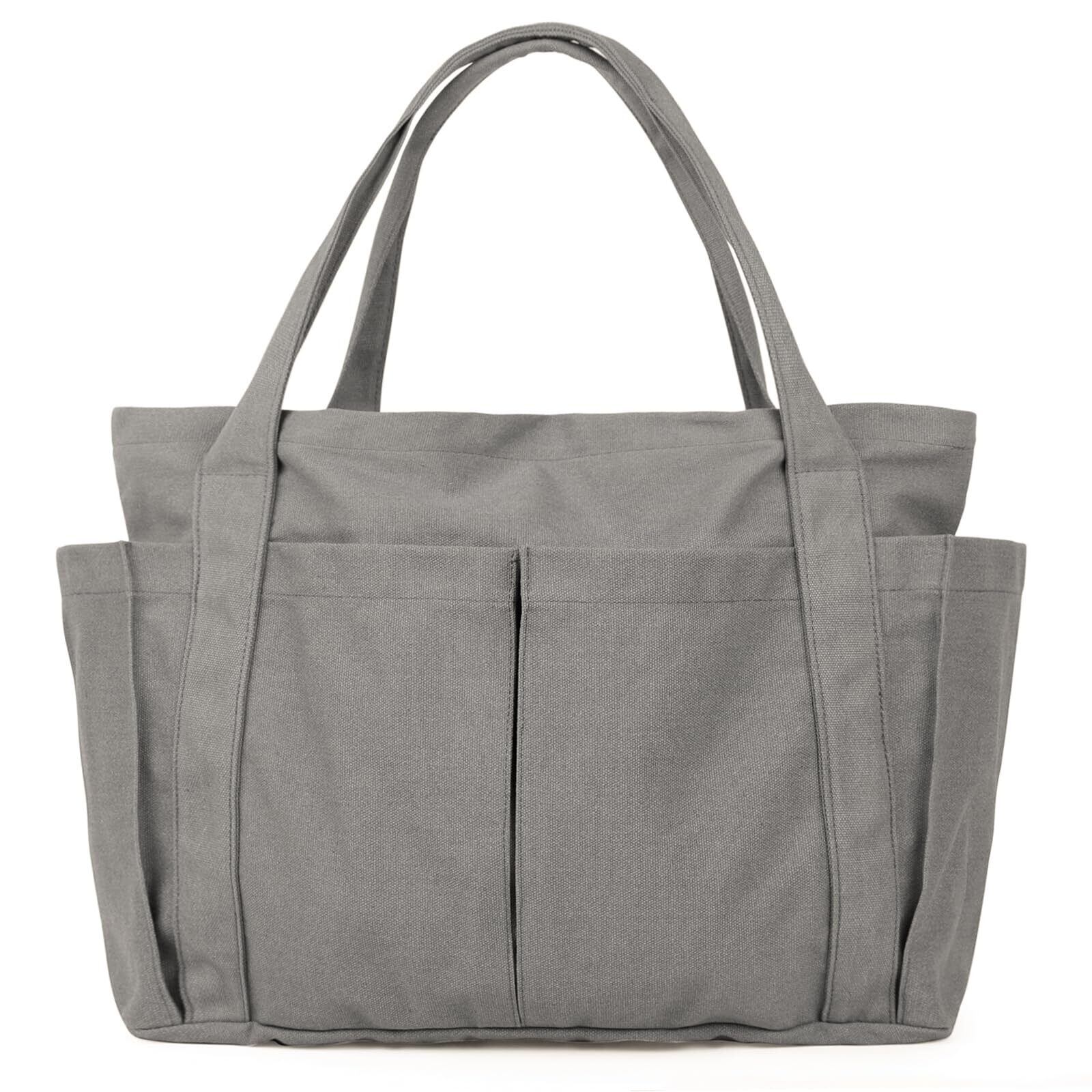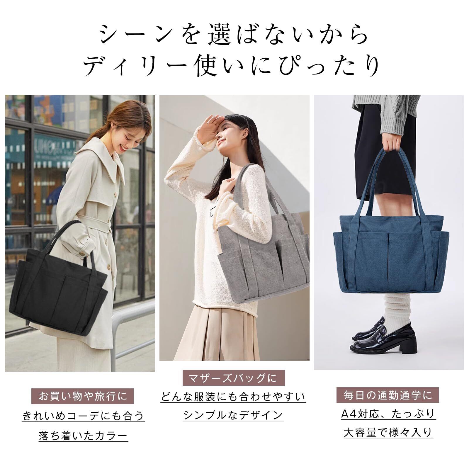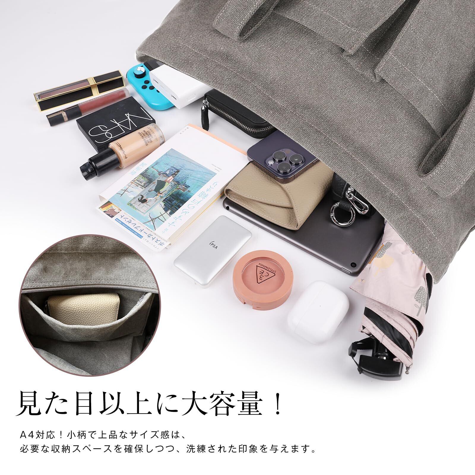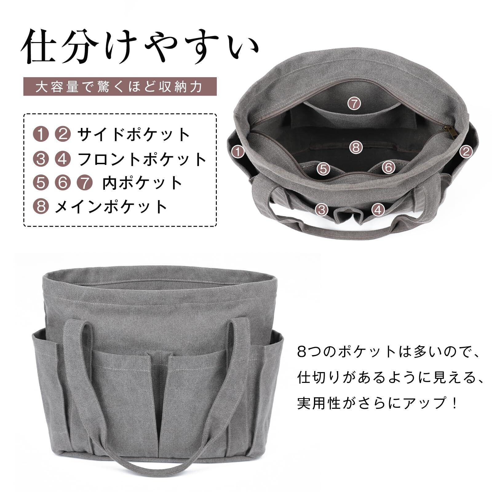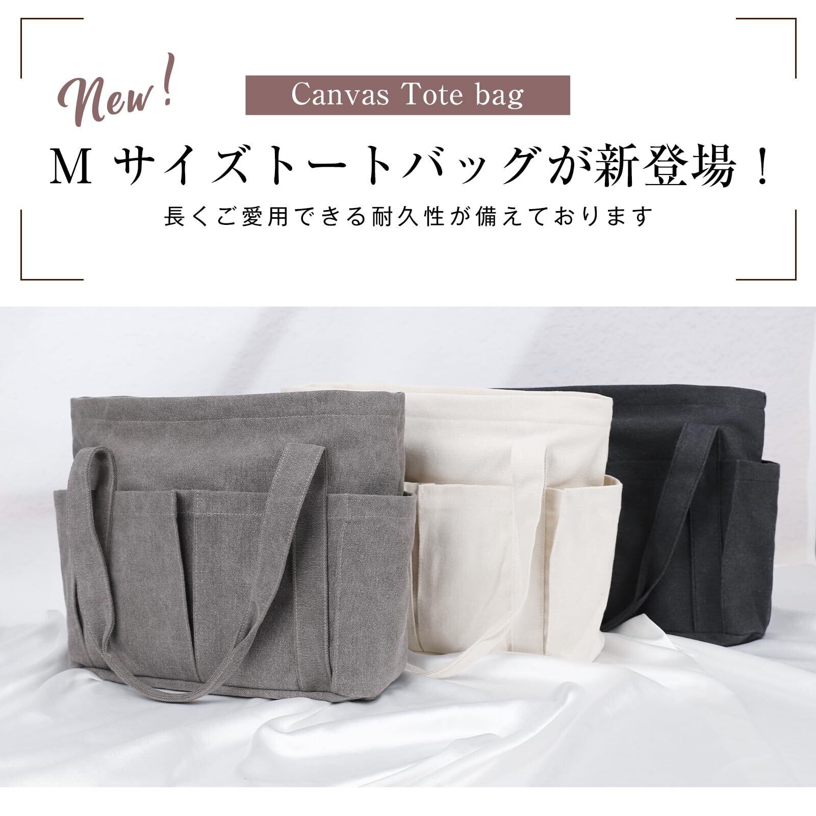 [imeetu] トートバッグ キャンバス 肩掛けバッグ レディース メンズ A4対応 通勤 通学 帆布 大容量 多機能 無地 (Ⅿサイズ グレー)