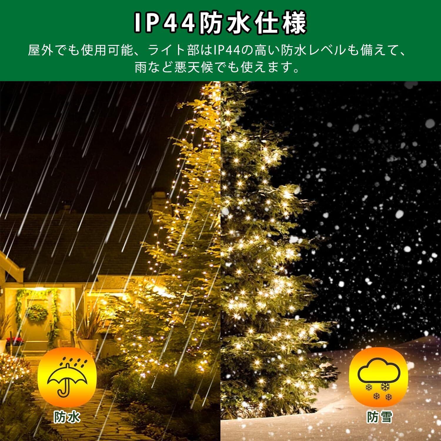 【IP44防水 ・屋内屋外兼用】ライト部はIP44の高い防水レベルも備えて、軽い雨や水しぶきに耐えることができ、雪の降る天候でもうまく機能します。屋内、屋外の飾りとして、壁、窓やベランダ、植物、クリスマスツリーなどを飾られます!イベントやパーティ、店舗のデコレーションにもオススメです。