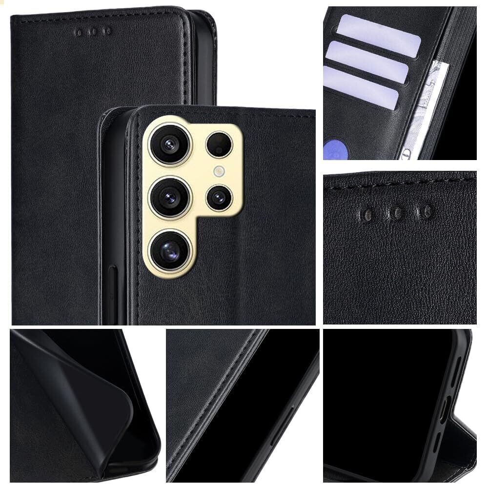 Galaxy S24 Ultra/SC-52E / SCG26 ケース 手帳型 Samsung ギャラクシーS24ウルトラ 財布型 カバー カードポケット付き SUGOIDAN 携帯ケース カード レザー スタンド機能 ストラップホール付き(ブラック)