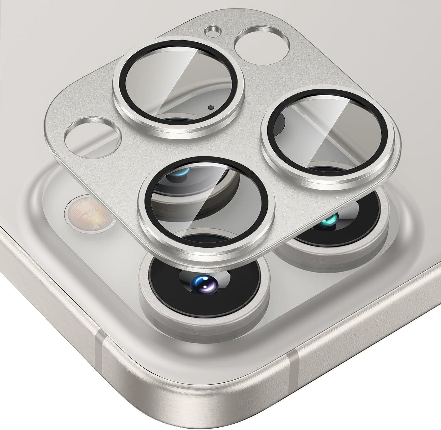 Hohotoon iPhone16 pro/16 pro max カメラ保護フィルム アルミ合金+AR高透過率強化ガラス製 レンズカバー 0.25mm超薄 一体型カメラ保護カバー アイフォン16pro/16pro max用カメラフィルム 3眼 レンズ保護ケース 9H 防爆裂 耐衝撃 粘着性強い スクラッチ防止 露出オーバー防止 ケースに干涉なし(シルバー)
