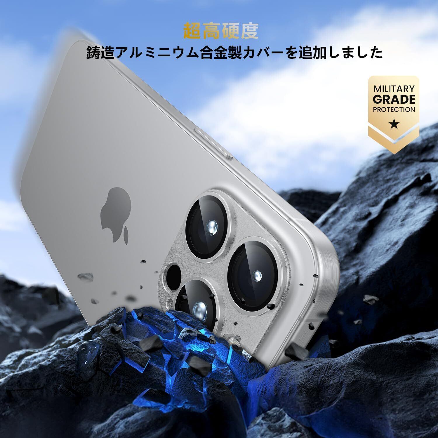 2.【全面保護・保護性高い!】3眼のレンズ部分だけではなく、四角い台座部分もカバーする一体型のデザインで、レンズに最高な保護力を提供しています。擦り傷や衝撃からカメラレンズをしっかりと守られます。アルミ合金製なので 耐久性は普通のガラス製のカメラフィルムより5倍UP!