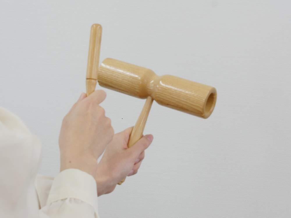 左右で音程が異なるので叩くと「カンコンカンコン」とコミカルな音色を響かせ、みんなを楽しませてくれます。