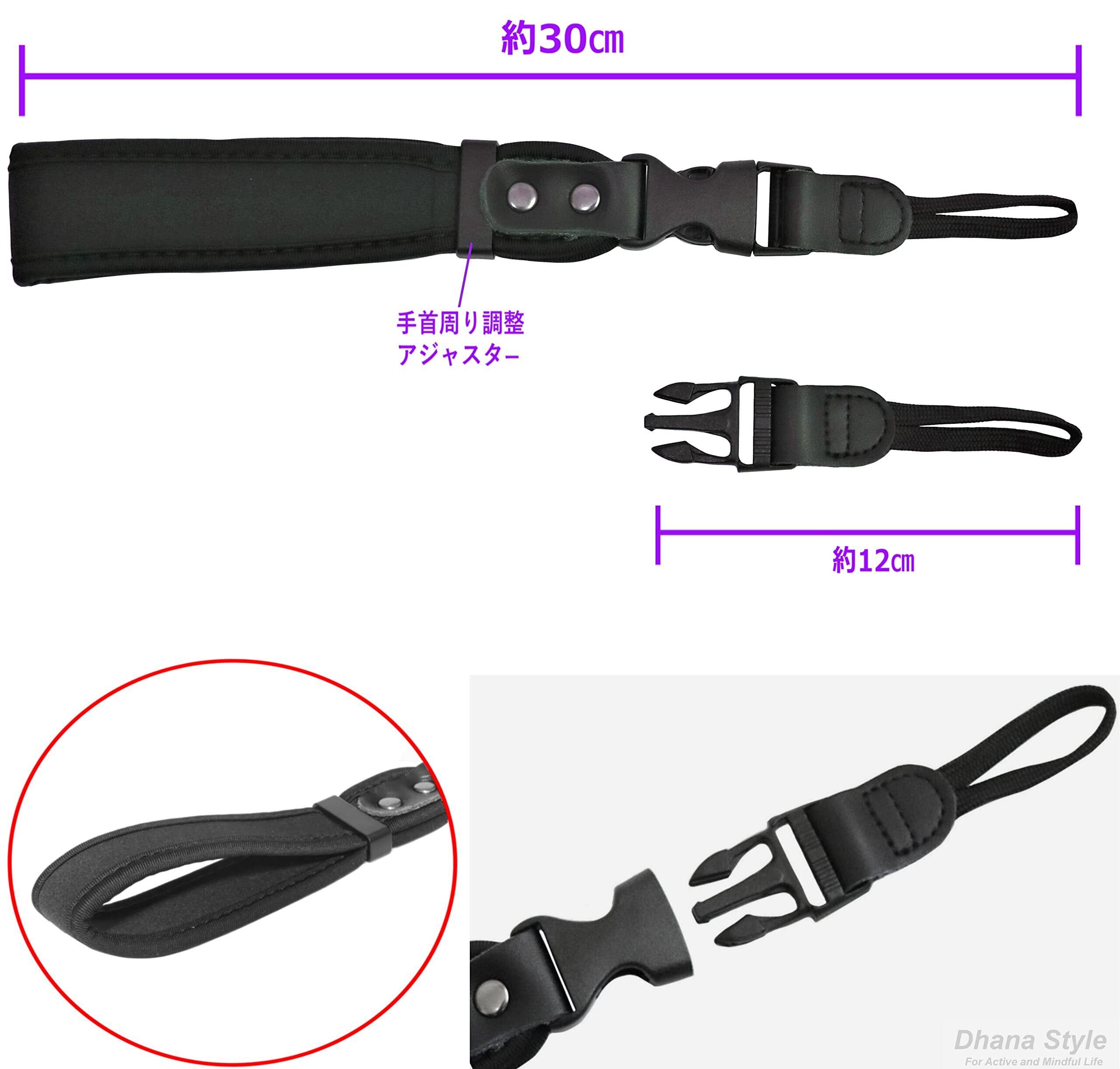 カメラ側のストラップ取り付け紐を手首に通したストラップから取り外して着脱可能なクイックリリース タイプ (分離式) ハンドストラップ グリップ ホルダー:脱着はバックル クリップ で【取り付け⇔取り外し】操作を簡単に行えます。お手持ちのカメラ側のストラップを装着しておけば、一回一回ストラップを換えずに、またはカメラや手首からストラップを取り外す事なく使用することが可能です。先端の結び紐は従来の細いタイプを改良版の太いタイプのナイロン素材を採用、強度と安定感があります。手首周りのサイズはアジャスターでフィット性を微調整が可能、スライド式のアジャスターで手首の装着位置を固定できるので、カメラを持つ際にストラップが回転して持ちにくいといった状況にならず快適なフィット感を得られます。デジタルカメラのモニター、スマホ・タブレットPC、等別端末での撮影画像の確認、バッテリー交換、レンズ交換、レンズキャップの脱着、レンズのキャップ落下防止ホルダーへの装着・取り外し、レンズフィルター交換、撮影中のレンズのお手入れ、等付随する作業を素早く行う事ができる様になります。