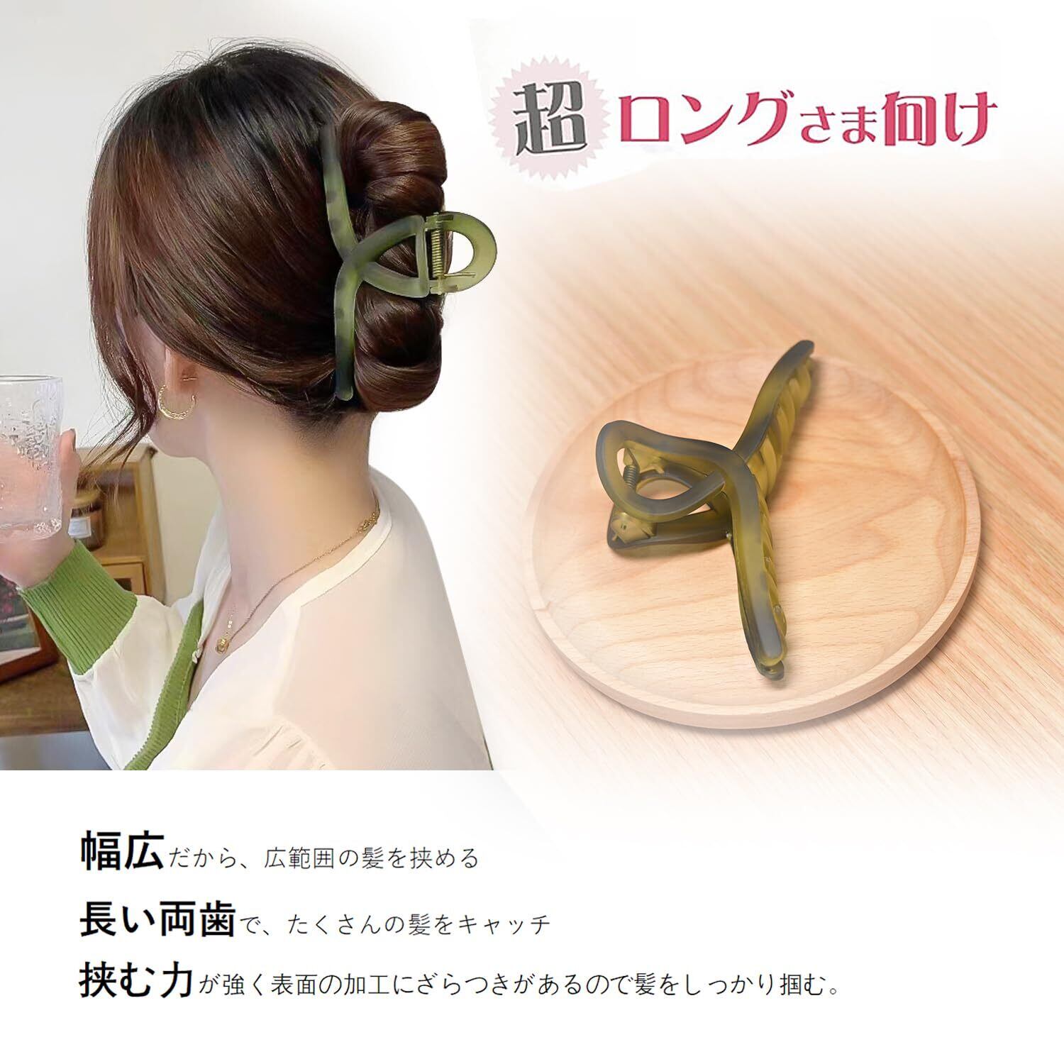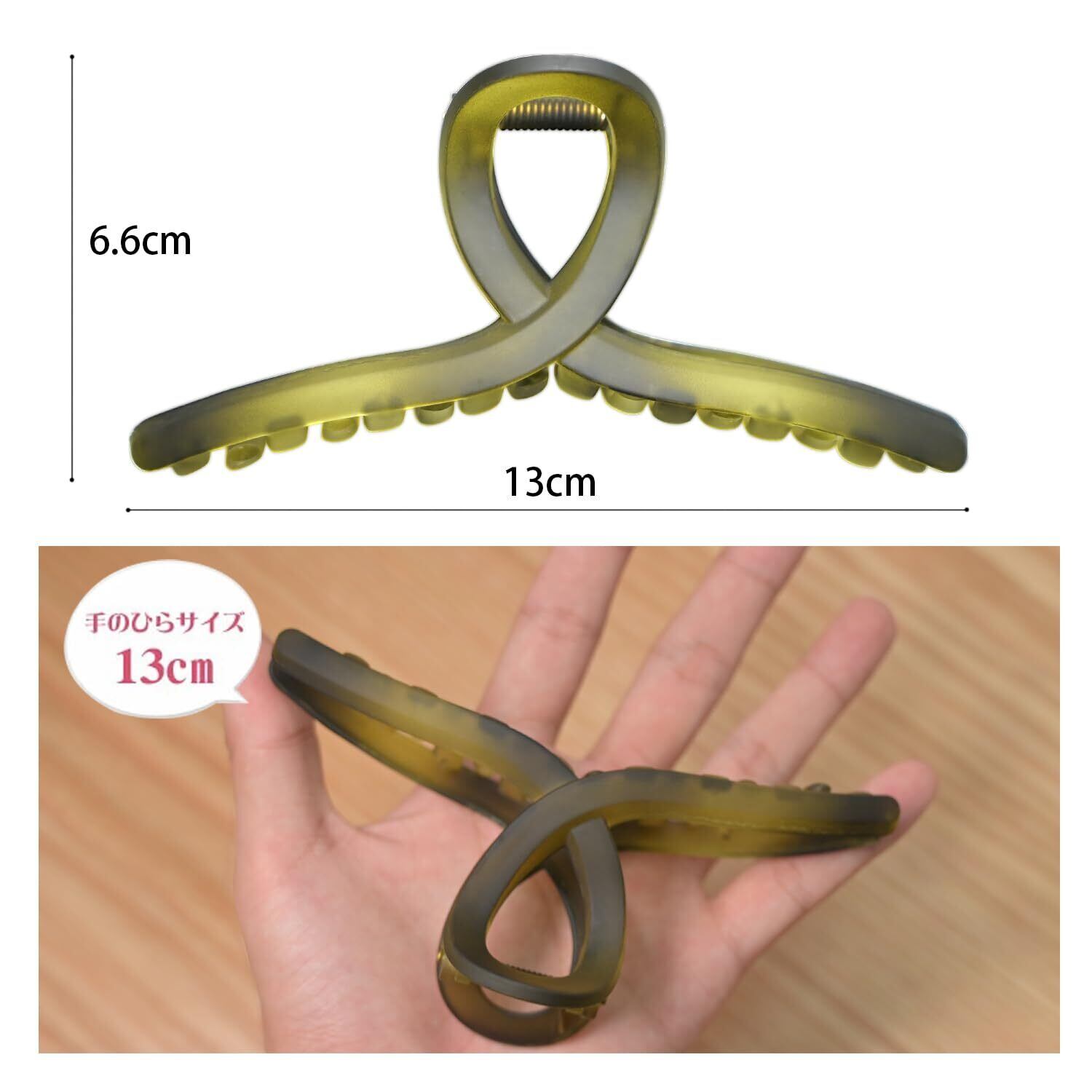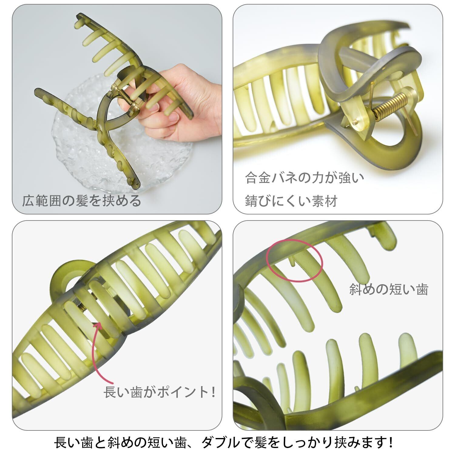 【大きめなヘアクリップ】13cmと大きめサイズで、さらにギザギザの滑り止め歯を採用して、厚い髪や薄い髪を最大限に固定することができます。簡単には落ちず、髪を傷つけることもありません。
