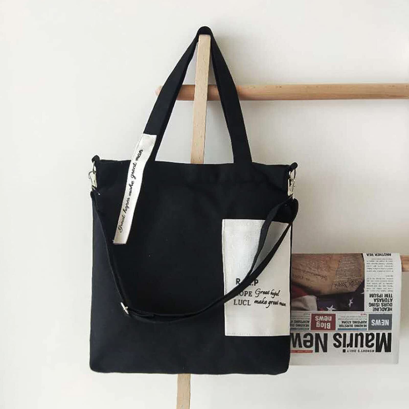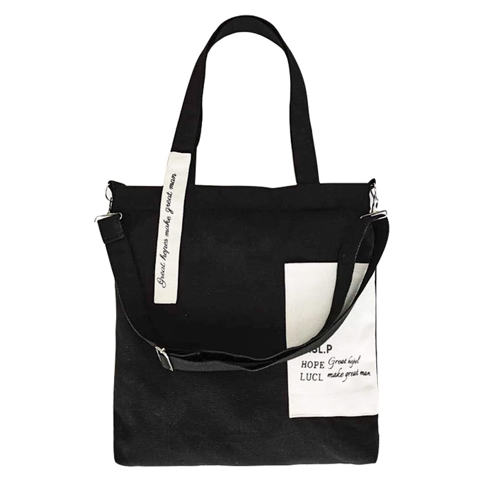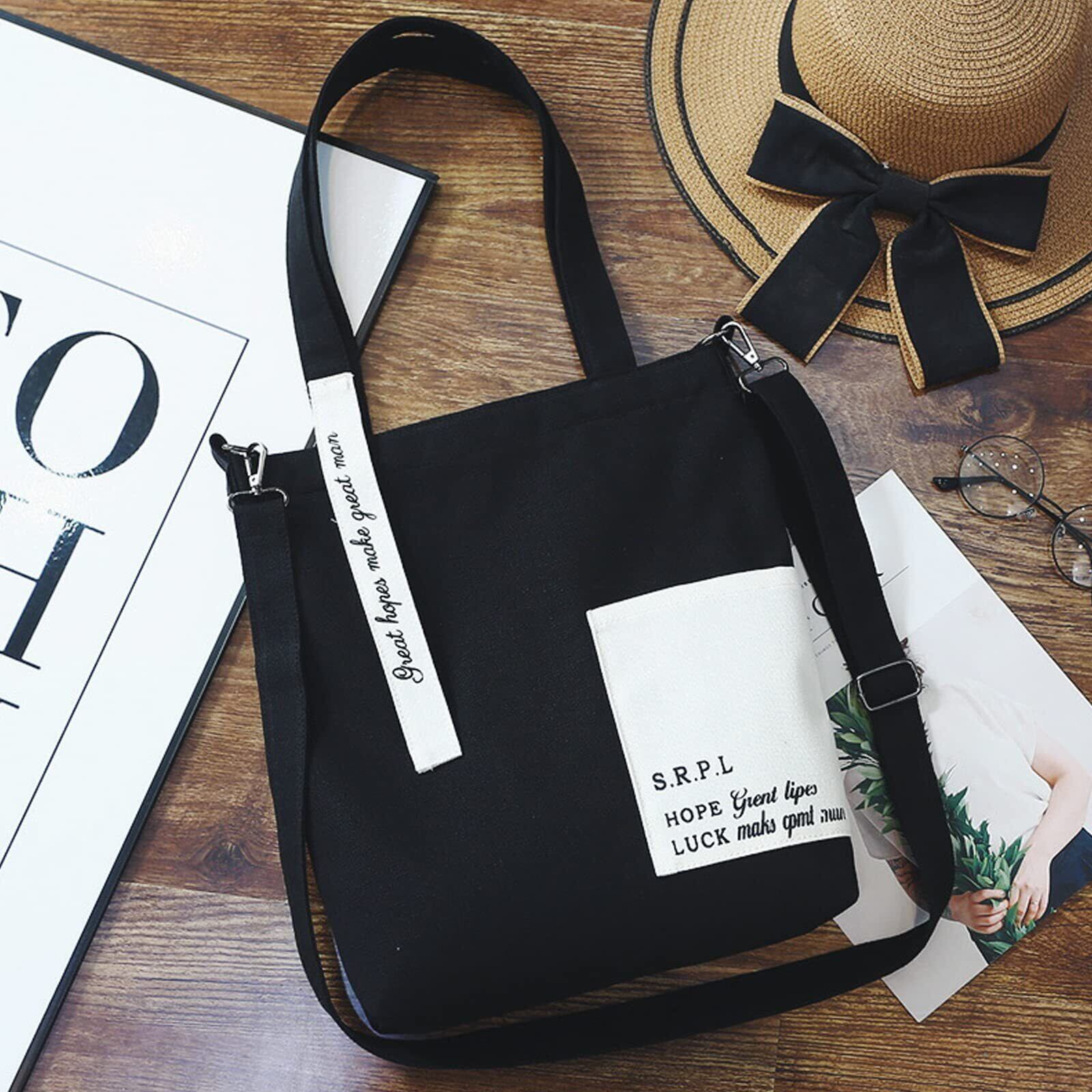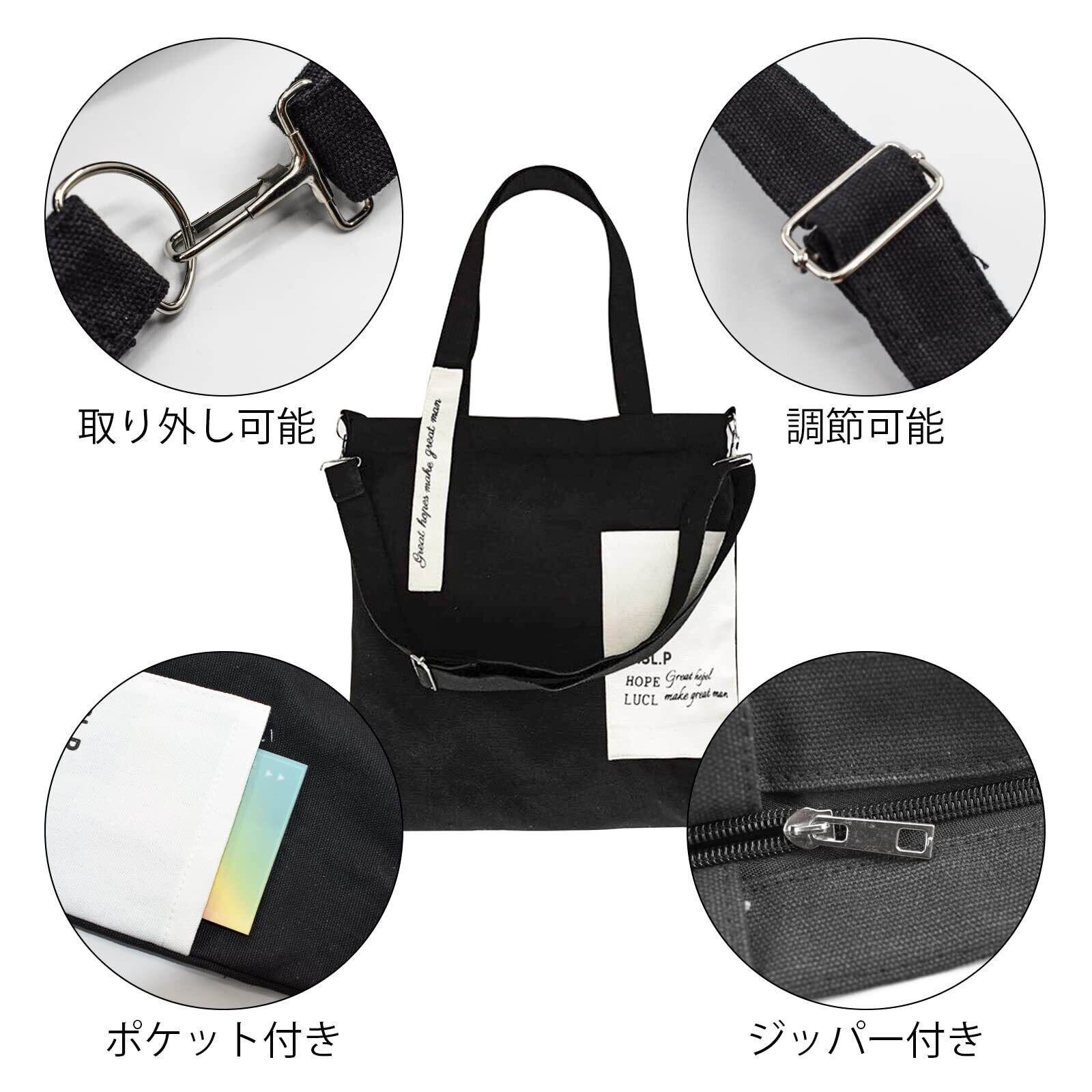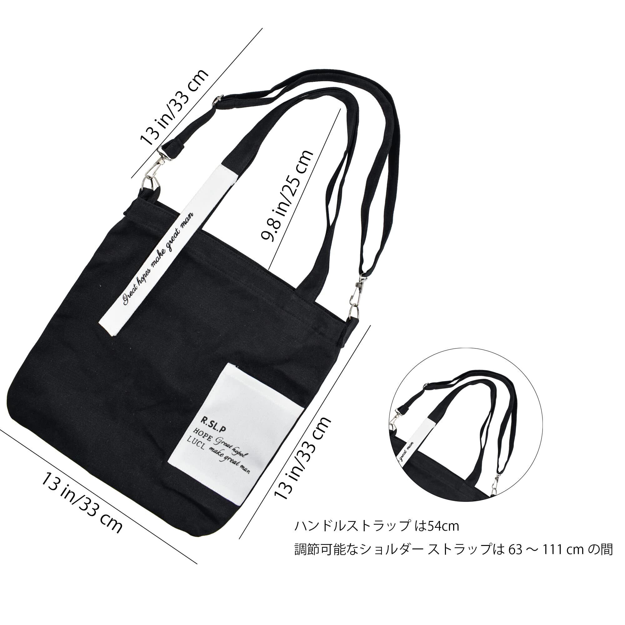[Enkrio] トートバッグ キャンバス 斜めがけバッグ 帆布 大容量 A4 軽量 ショッピングバッグ 肩掛けバッグ 手提げ袋 折り畳み ポケット レディース メンズ おしゃれ 通学 通勤 (黒と白)