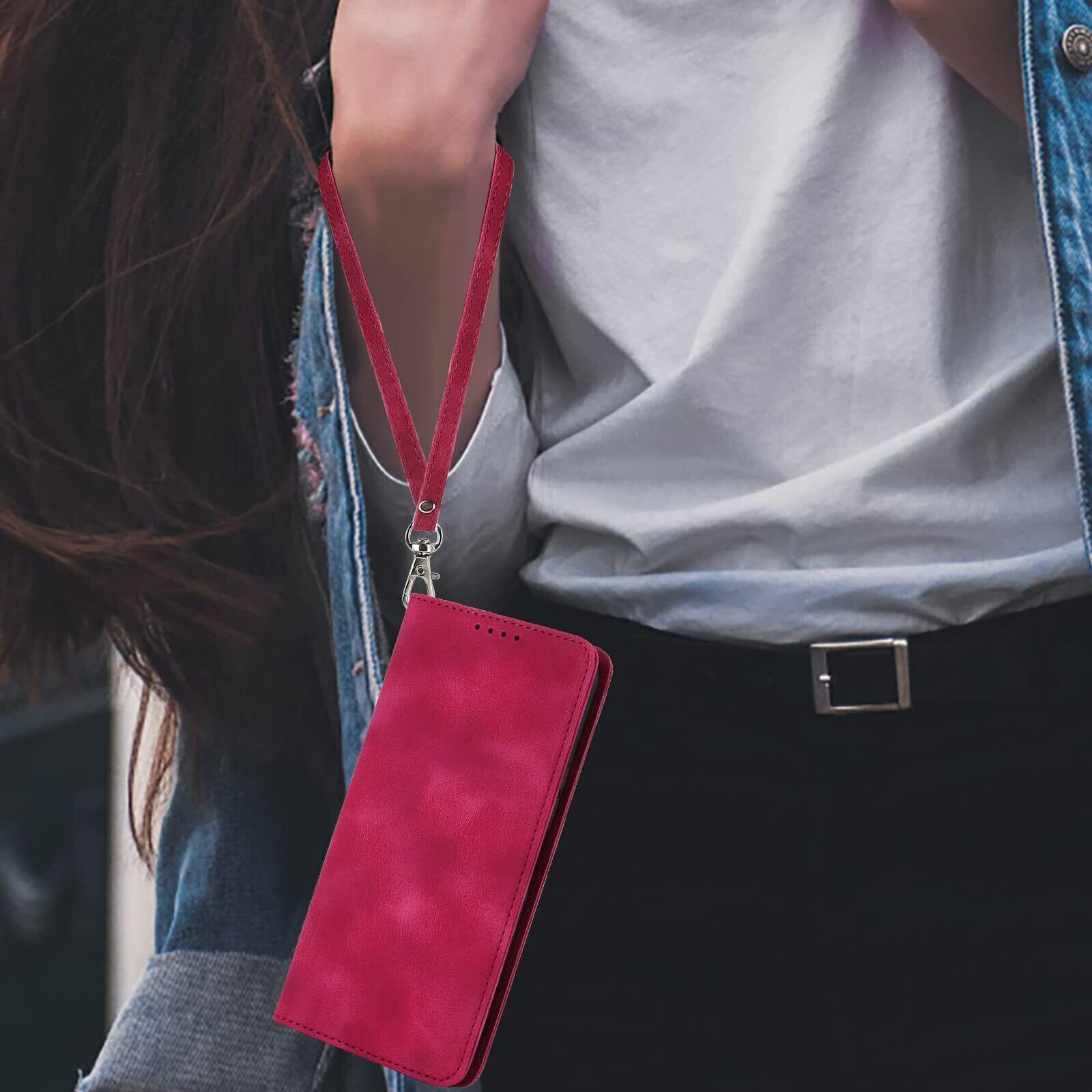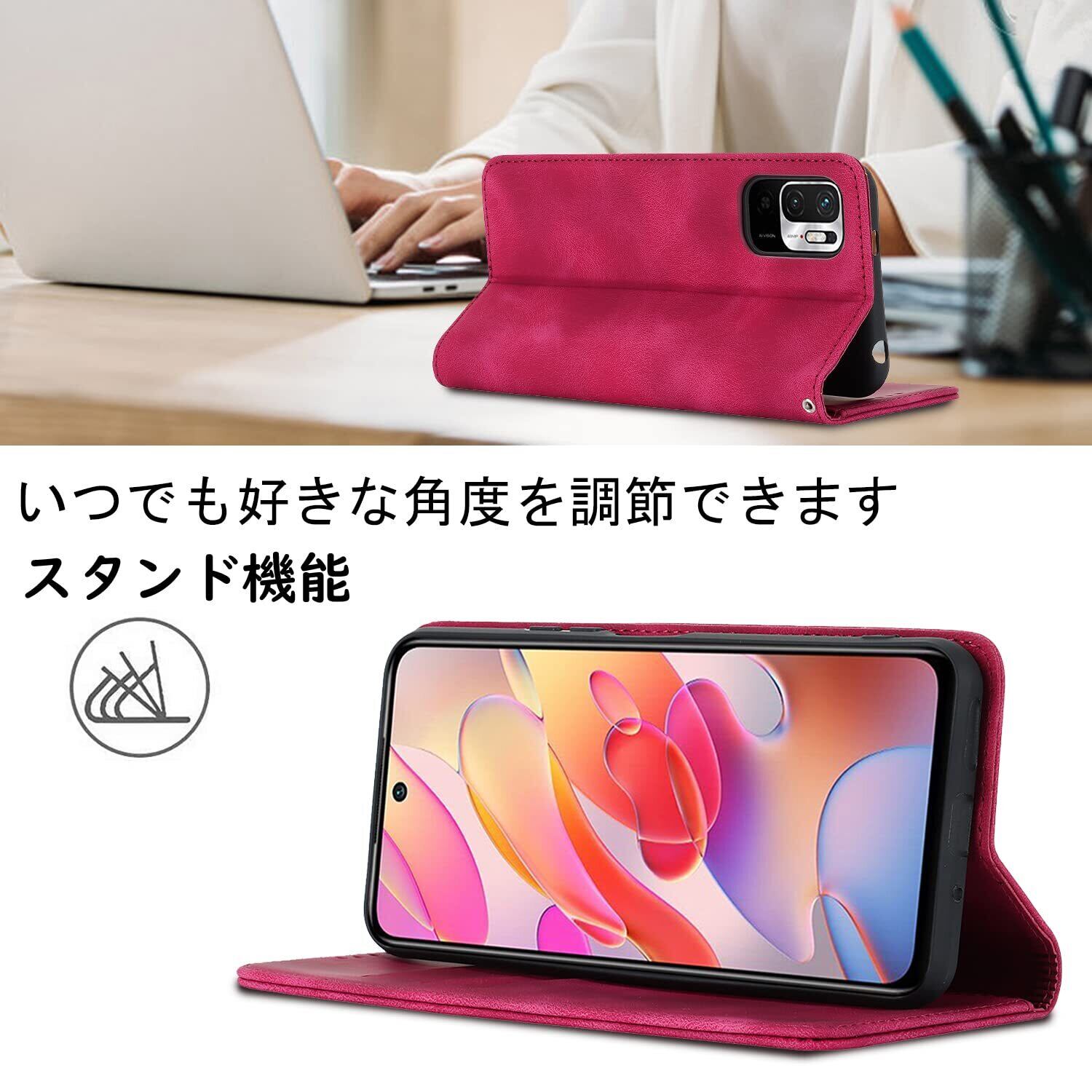 Havaya Redmi Note 10T ケース Redmi Note 10 JE ケース xig02 ケース 手帳型 ストラップ au ノート10 JE 耐衝撃 カバー docomo Xiaomi マグネット式 カード収納 SoftBank スタンド機能 レザー スエードの質感-ローズレッド