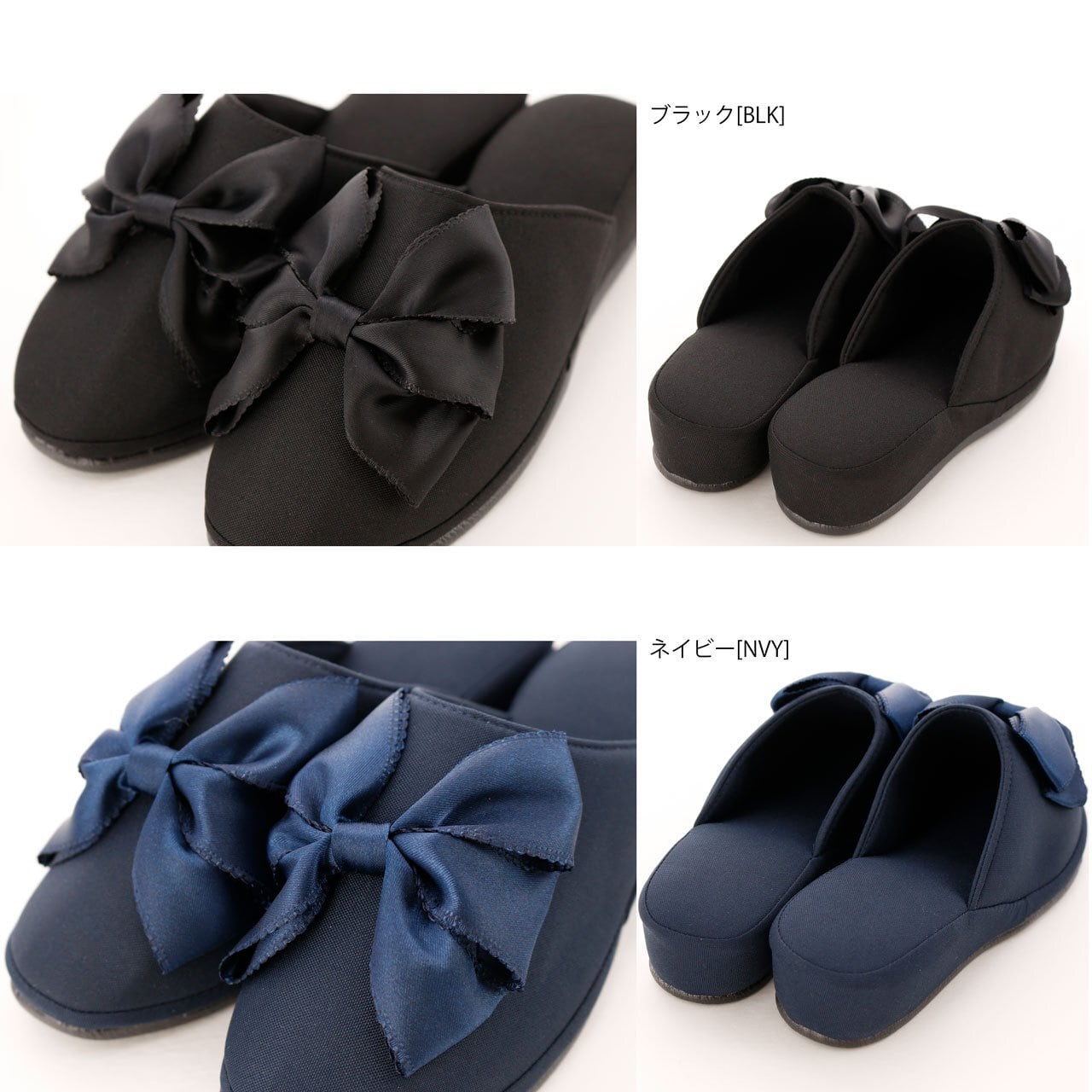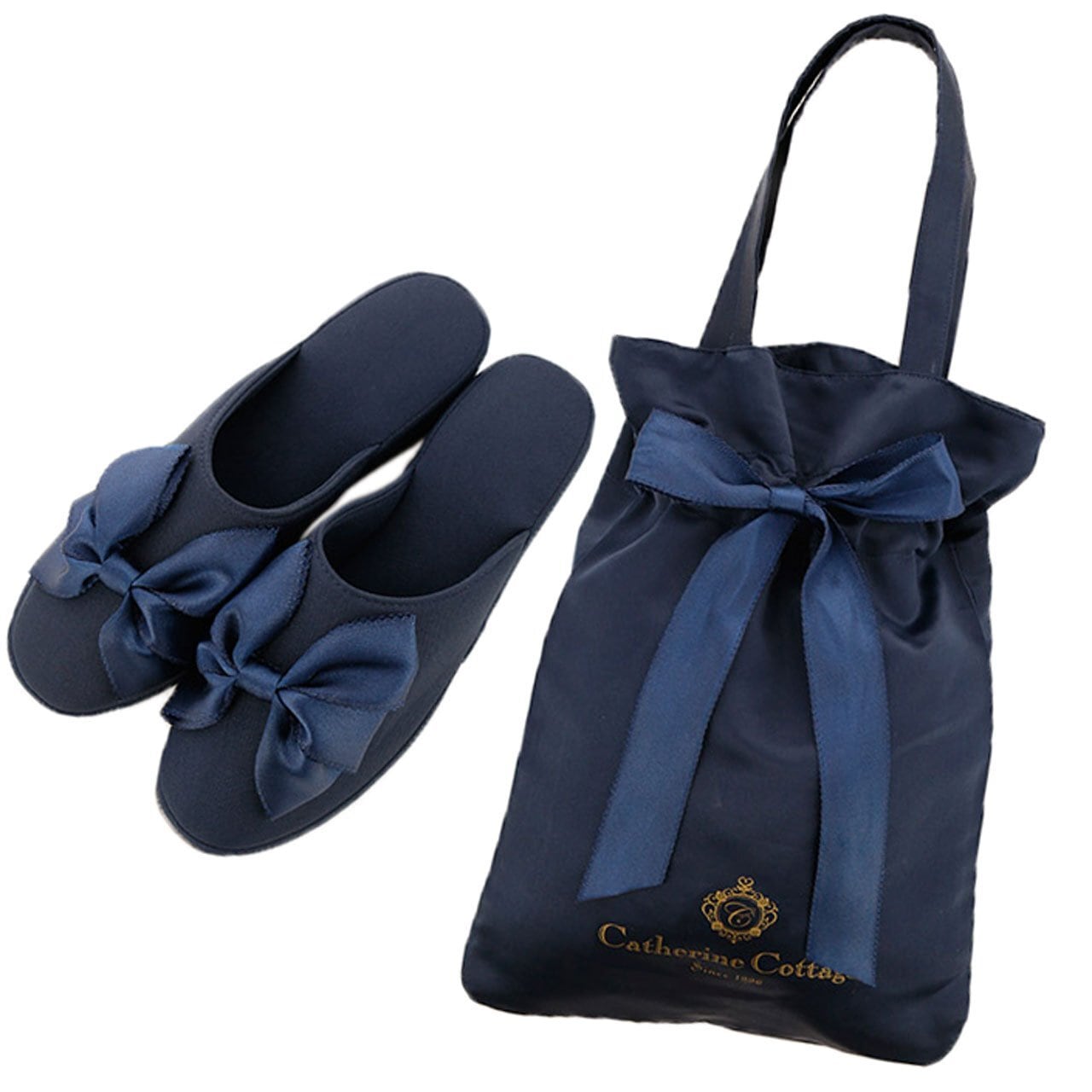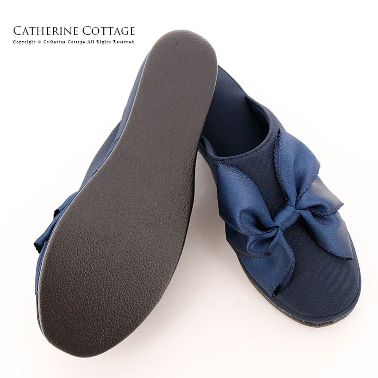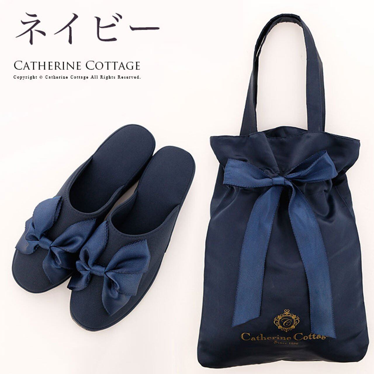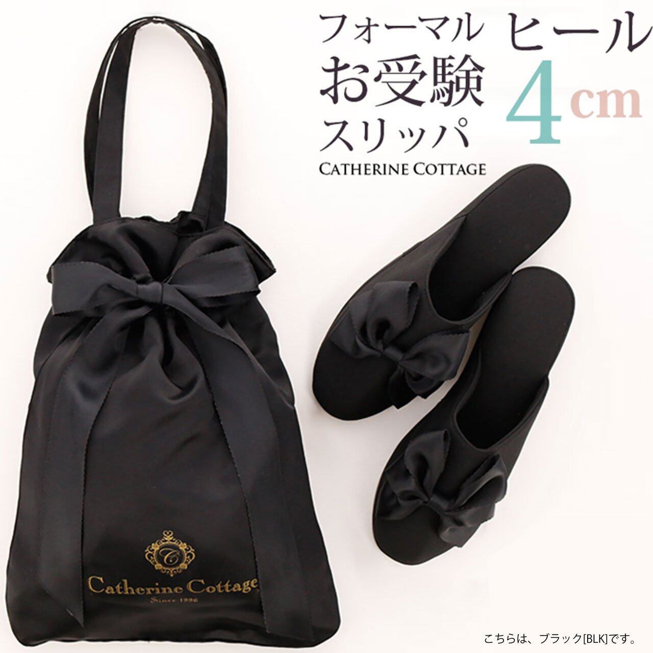 Catherine Cottage (キャサリンコテージ) SH002 ヒール付き フォーマル スリッパ & リボン巾着袋セット フリー ネイビー[NVY]