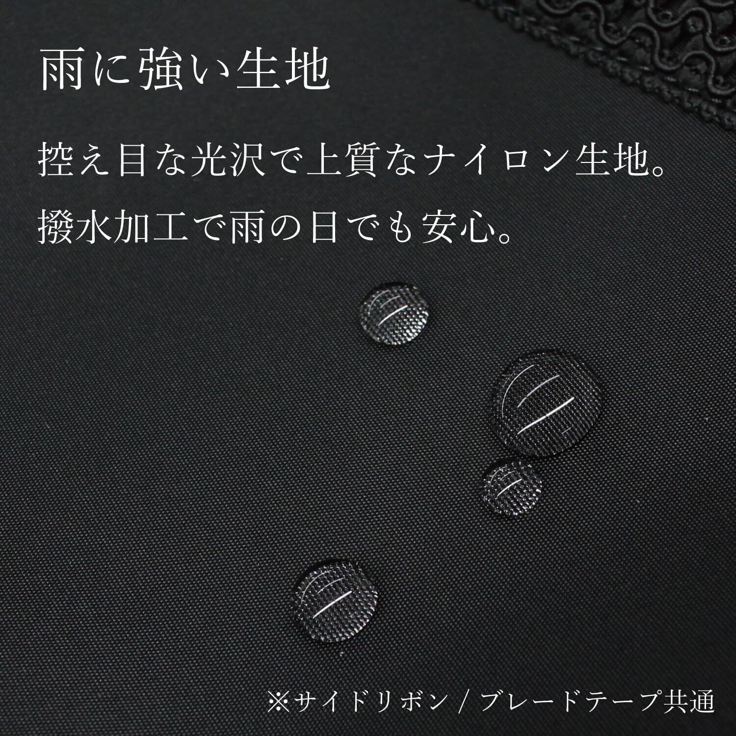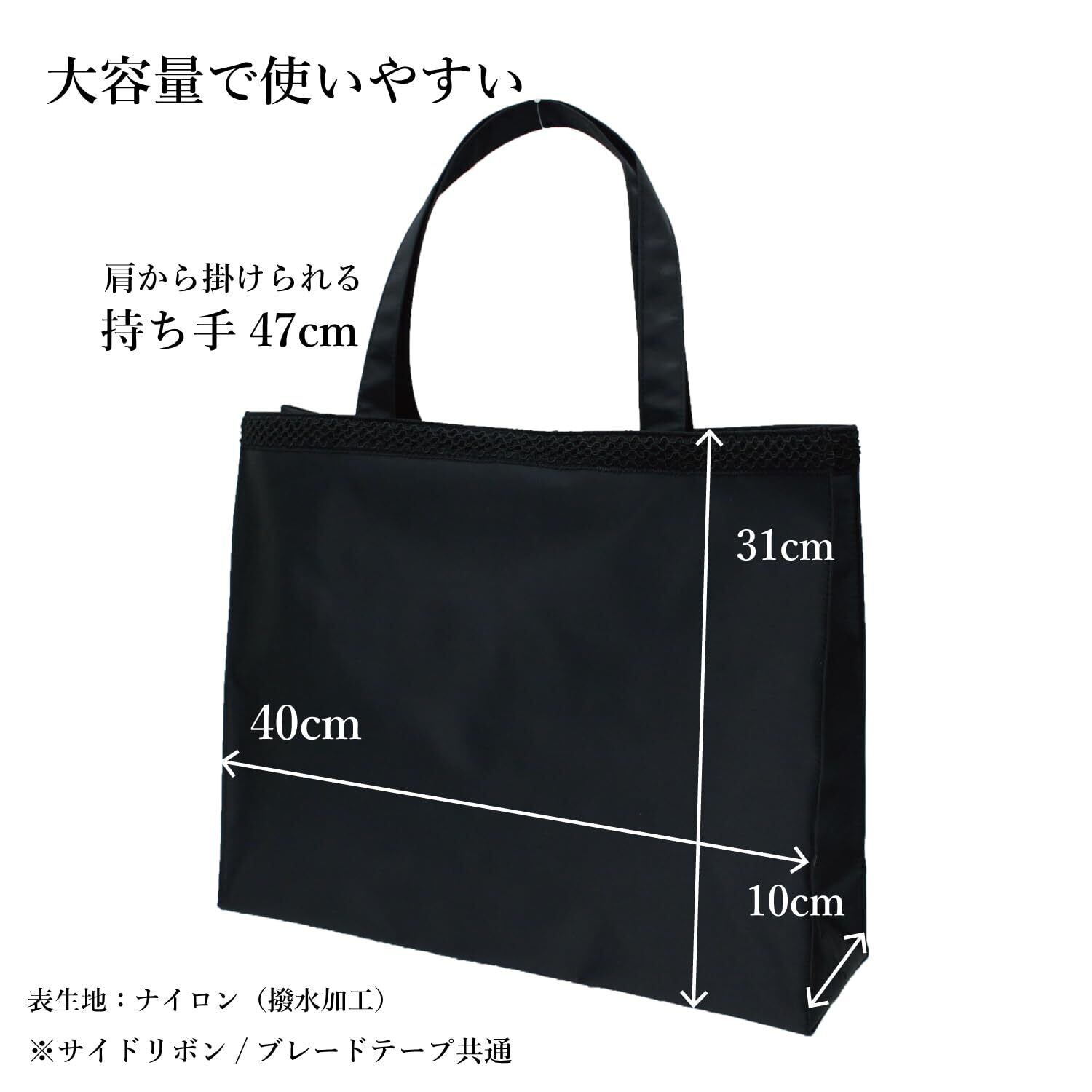 素材 表生地:ナイロン生地(撥水加工) 内生地:ポリエステル 底板:PE(ポリエチレン) ブレードテープ:背面まで一周飾り付き