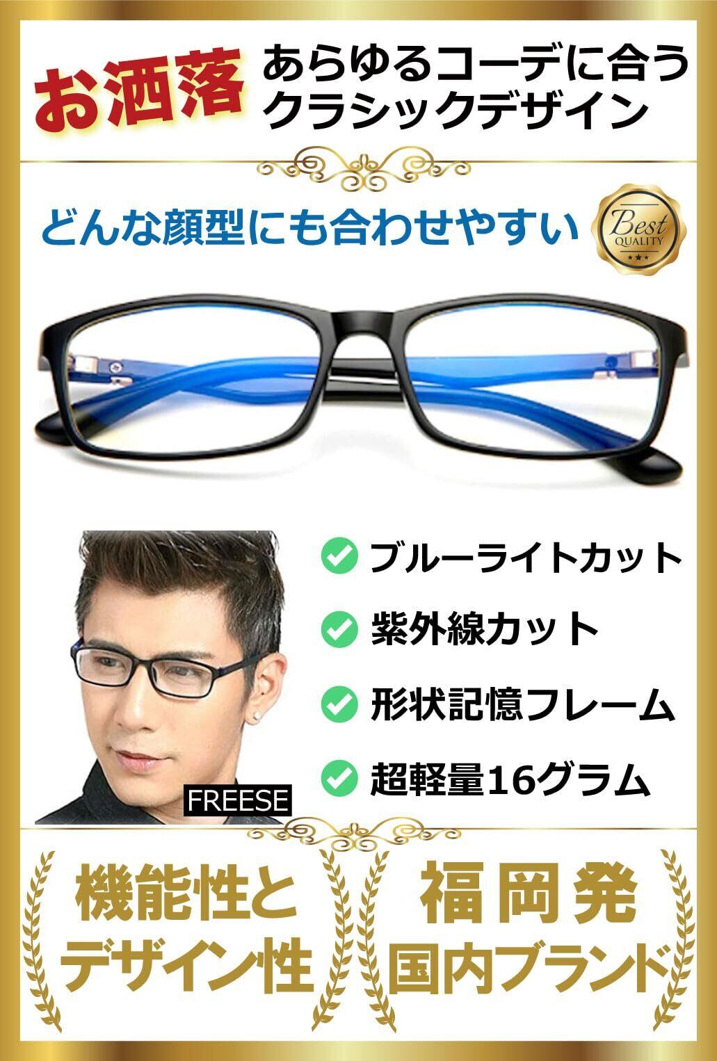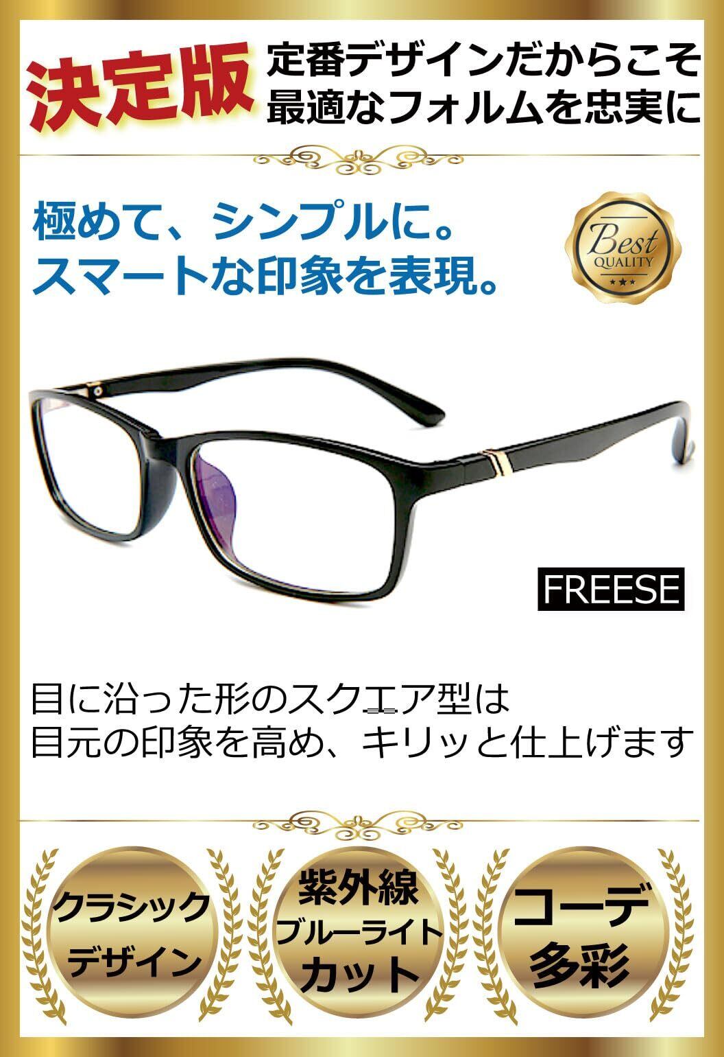 [FREESE] ブルーライトカットメガネ メンズ PC眼鏡 UVカット 形状記憶 超軽量16g 黒縁 スクエア (Black)