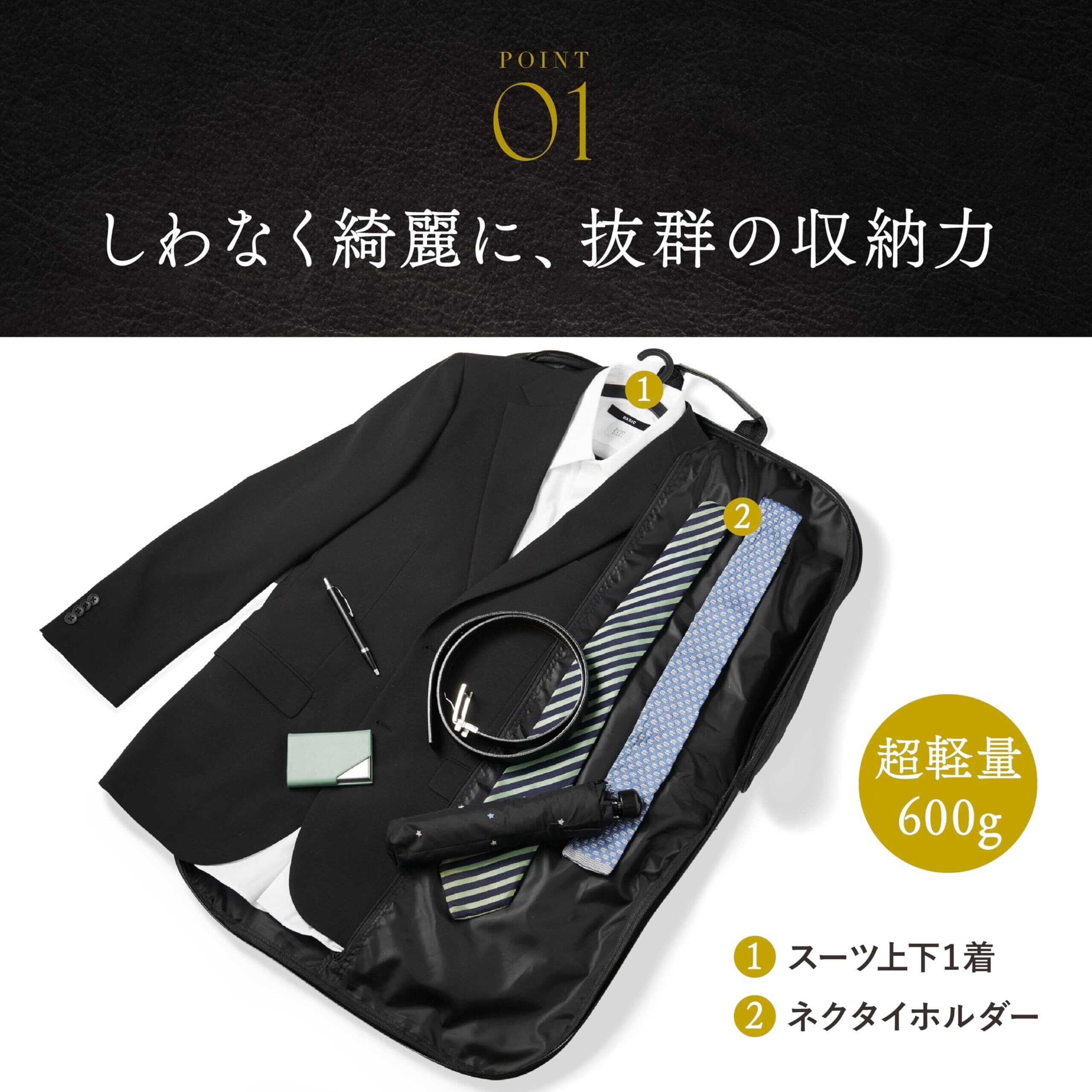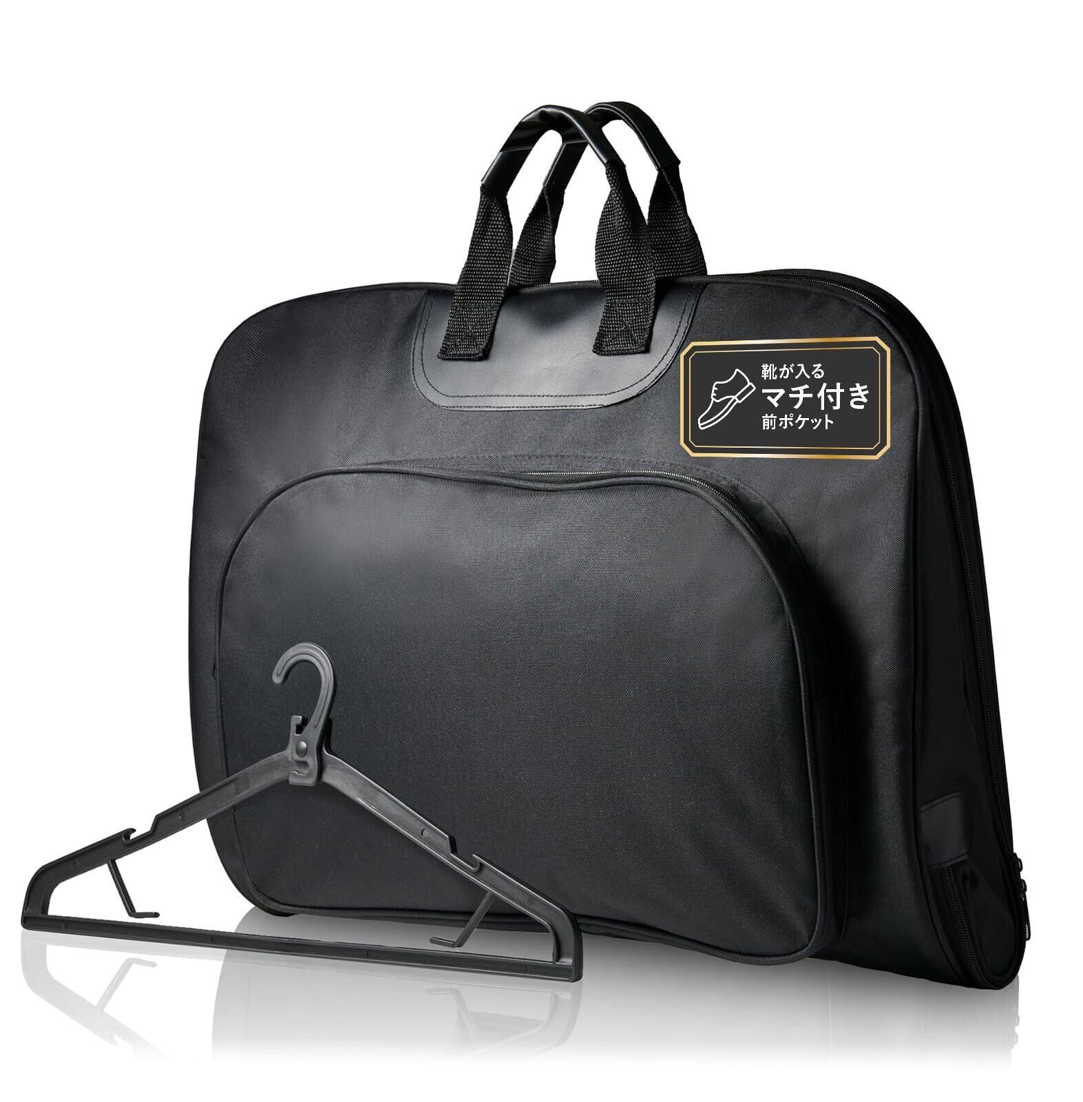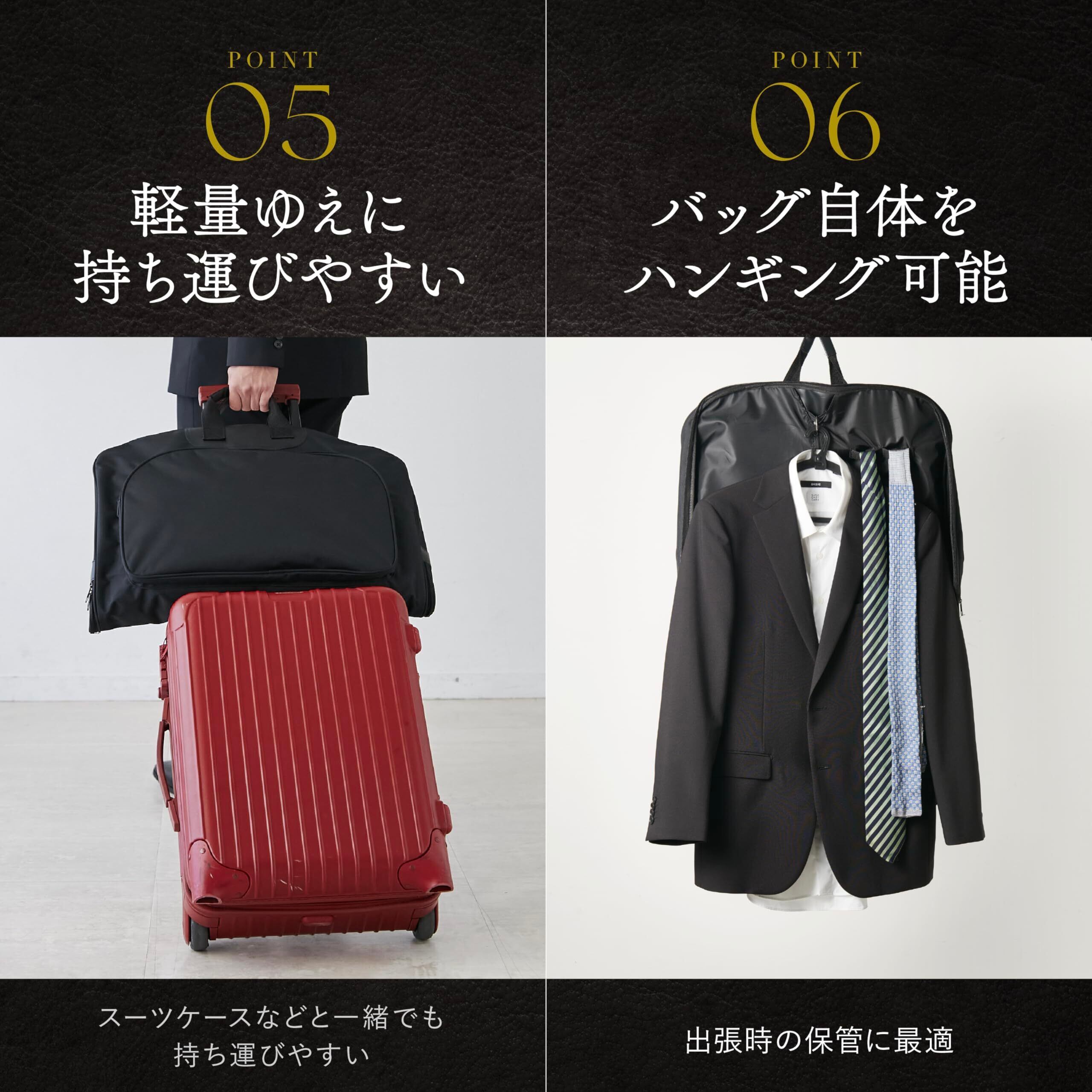 [グレヴィオ] 一流の鞄職人が作る ガーメントバッグ 防水 型くずれ防止 ポケット付き ハンガー ハンガー付き 1着用 2着用 ガーメントケース 0L 43 cm ブラック 冠婚葬祭 出張 スーツ 持ち運び 靴 靴収納