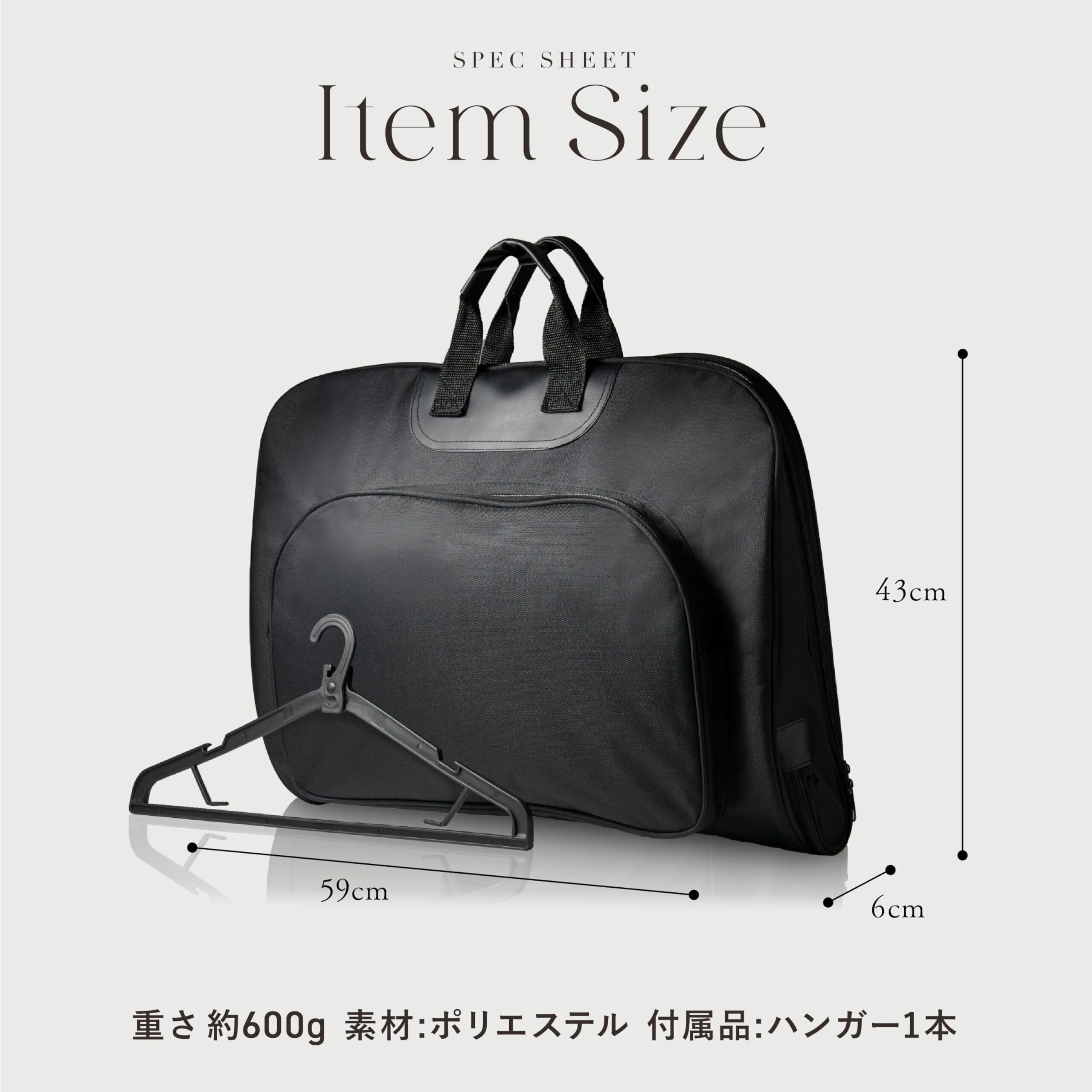 ■【ベーシックなデザインほど愛着が湧く】シンプルなデザインは長く使えて、かさばるスーツも型くずれせずにコンパクトに持ち運べる、人気の商品となっています。ビジネスシーンではもちろん、冠婚葬祭の際にも重宝すること間違いなし。2つ折りタイプなので丈のある長いものも収納でき、ご家庭にひとつあると男女問わず、シーンを選ばずにご利用いただけます。サイズ:約59cm×43cm×6cm 素材:ポリエステル 商品: ガーメントバッグ