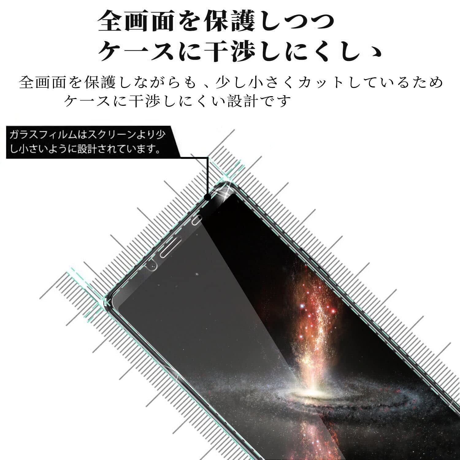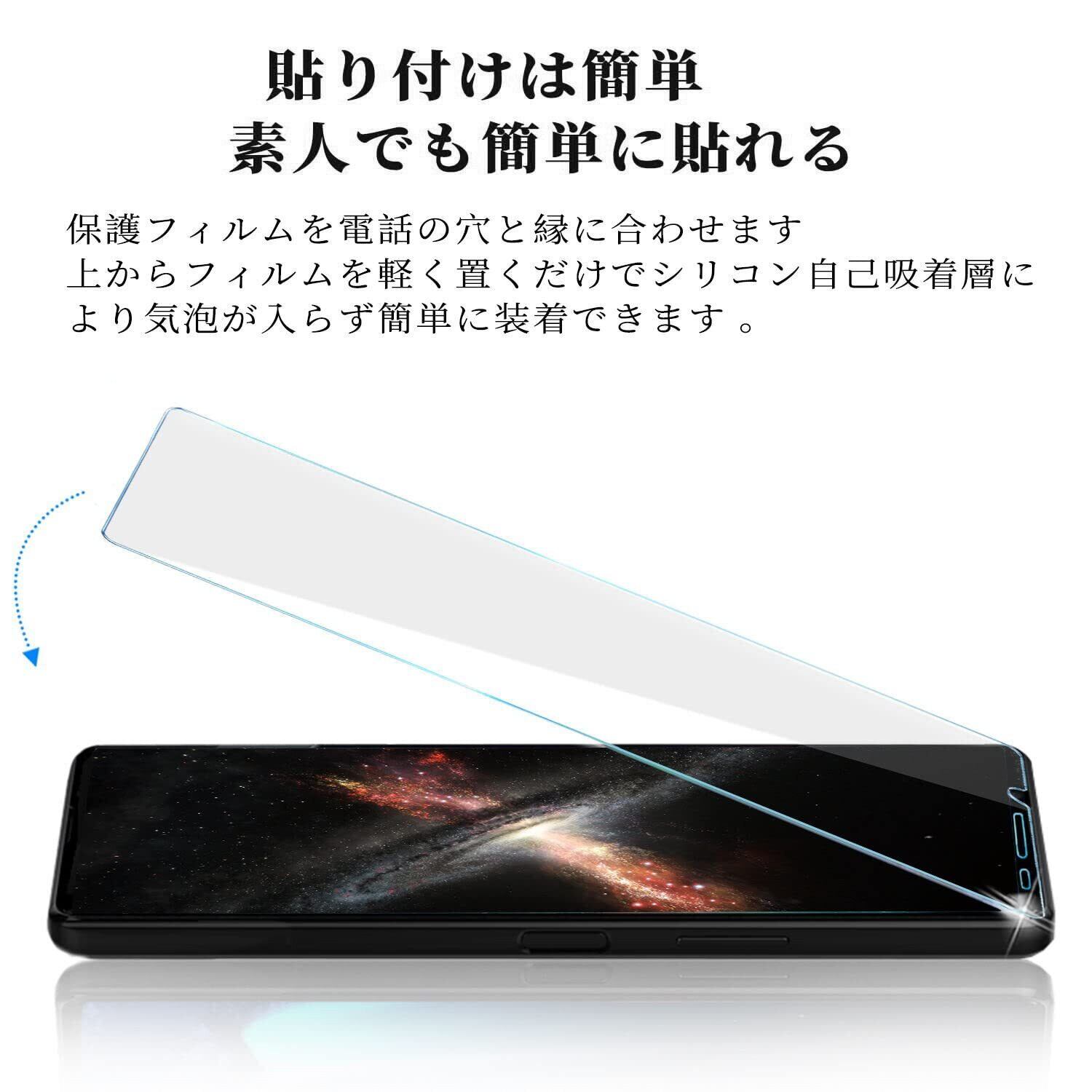 『対応機種』 Xperia10 II (SO-41A SOV43)専用。携帯は端部のカーブがフィルム剥がれ、浮きの防止、スマホケース装着スペース確保のため、機器の曲面の縁にスペースを残すデザインとなっています。