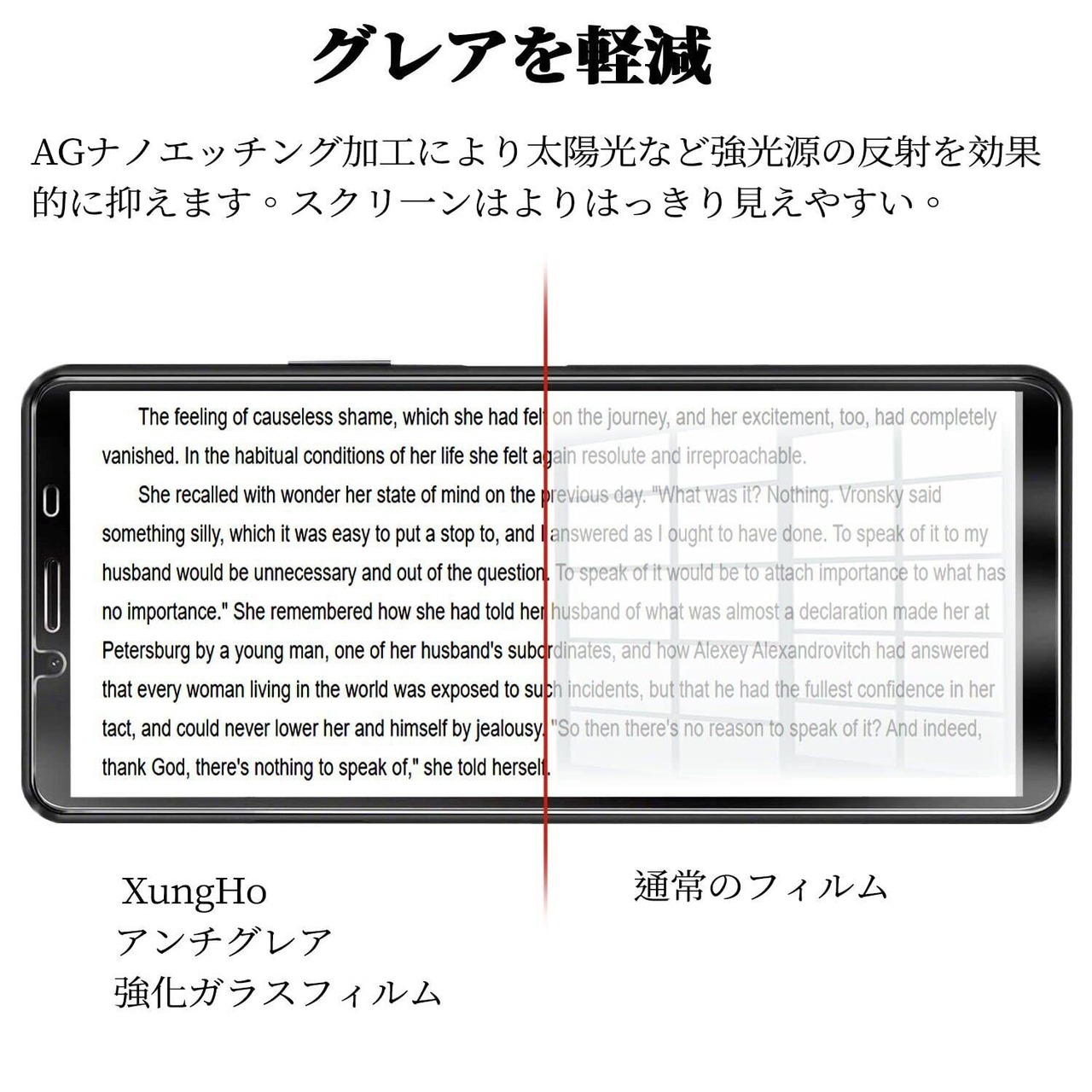 『アンチグレア』XungHo独自の反射防止コーティングの加工で、ディスプレイの表面に太陽光や蛍光灯などの反射を抑えます。視認性を向上させて画面が見えやすくなり、目の負担を軽減できます。更にサラサラ手触りで指紋の跡が残りにくく、指のすべりが滑らかでゲームをするのに適しています。