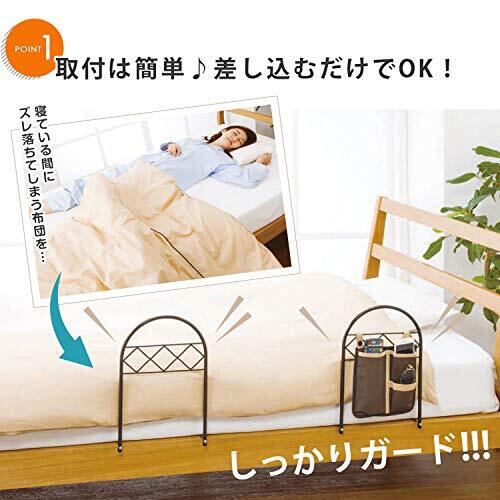 コモライフ ポケット付きのベッドガード 2個入り サイドポケット ベッドガード 布団 ずれ防止 収納ポケット ベット 簡単取付 落下防止 黒 【約縦39×横25×奥行33cm】