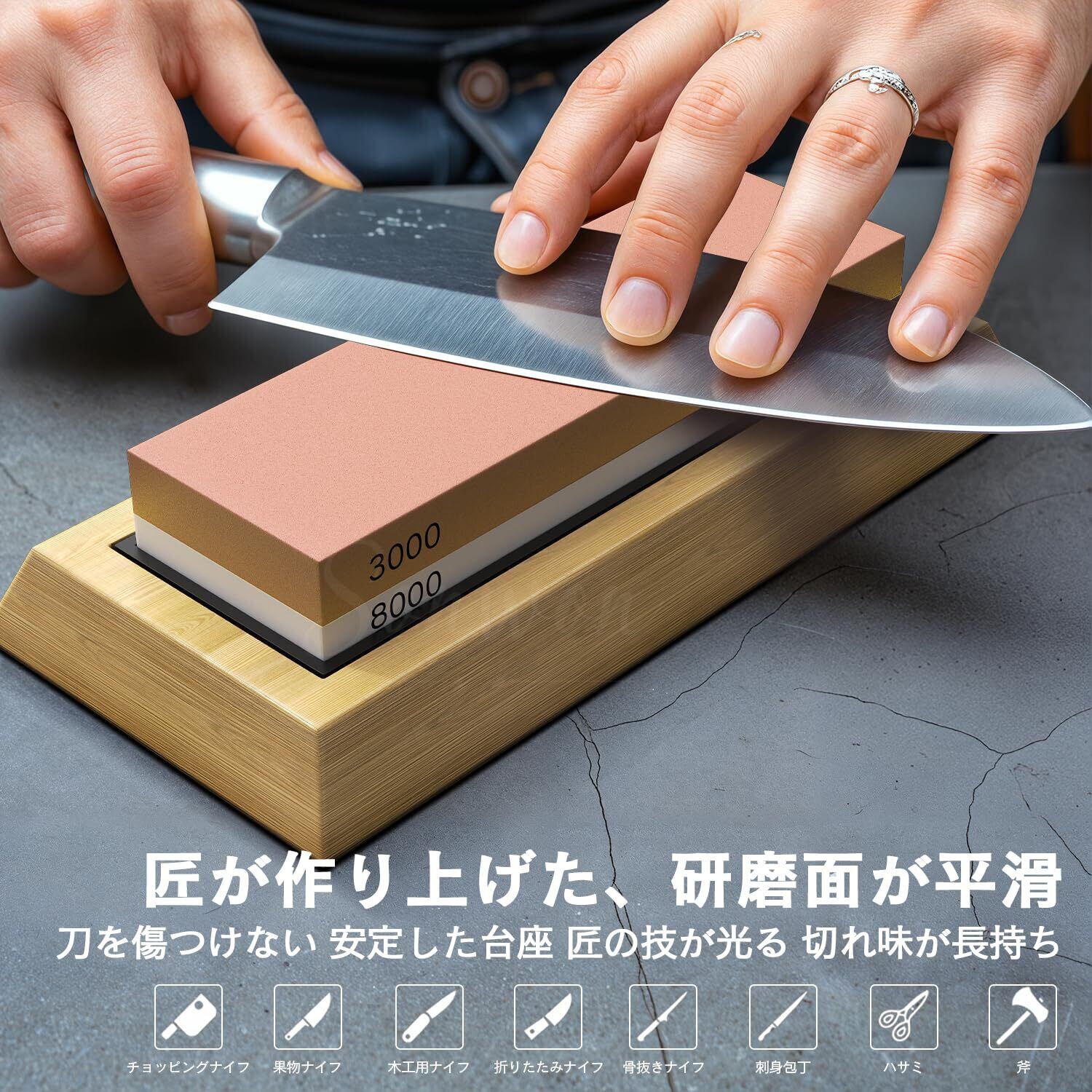 【初心者プロ向き】この研ぎ石は、角度固定用刀補助具付きのでプロはもちろん、初心者の方でも簡単に使いこなせる。または、高級竹砥石台つきので、従来のゴムの滑り止めと比べ、研いでいる最中に包丁が手元からずれて大事故になるのを防げます。とても安心てきます