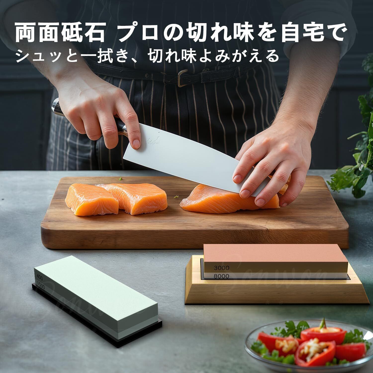 Snowon 砥石 包丁研ぎ石 400 1000 3000 8000両面砥石 荒砥 中砥 仕上げ砥石 滑り止め台付き 面直し 角度固定ホルダー付き 砥石セット 家庭用中砥石 包丁研ぎに最適