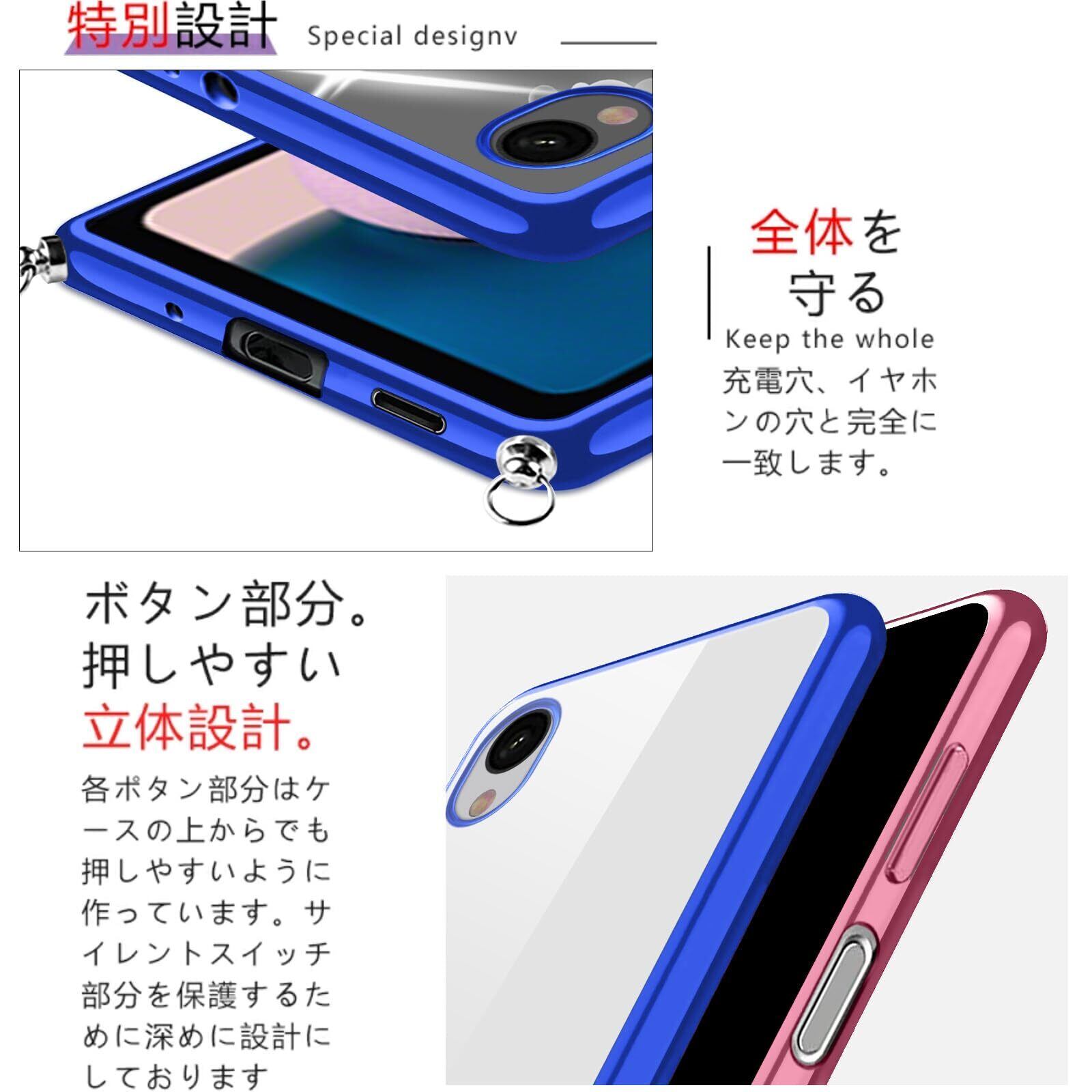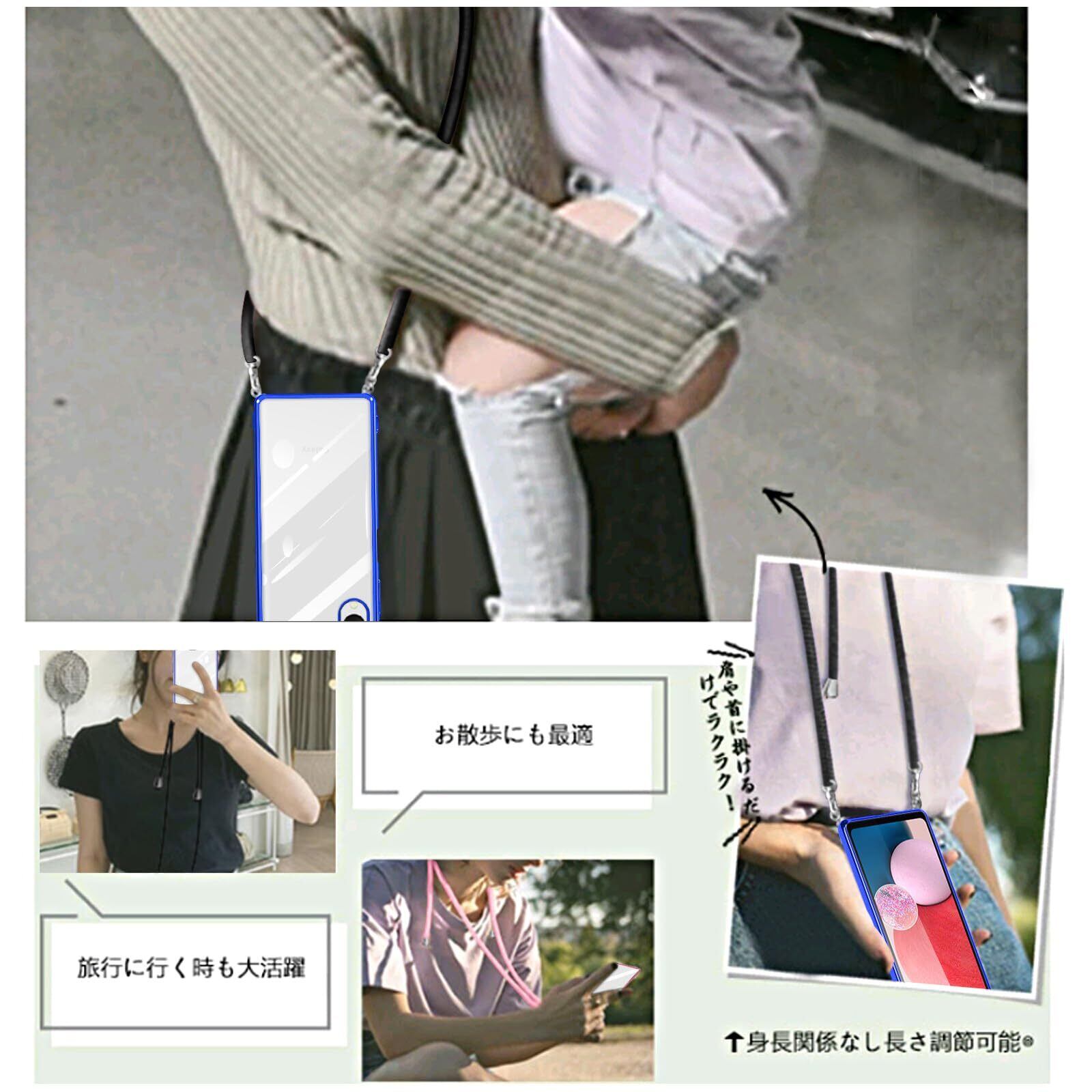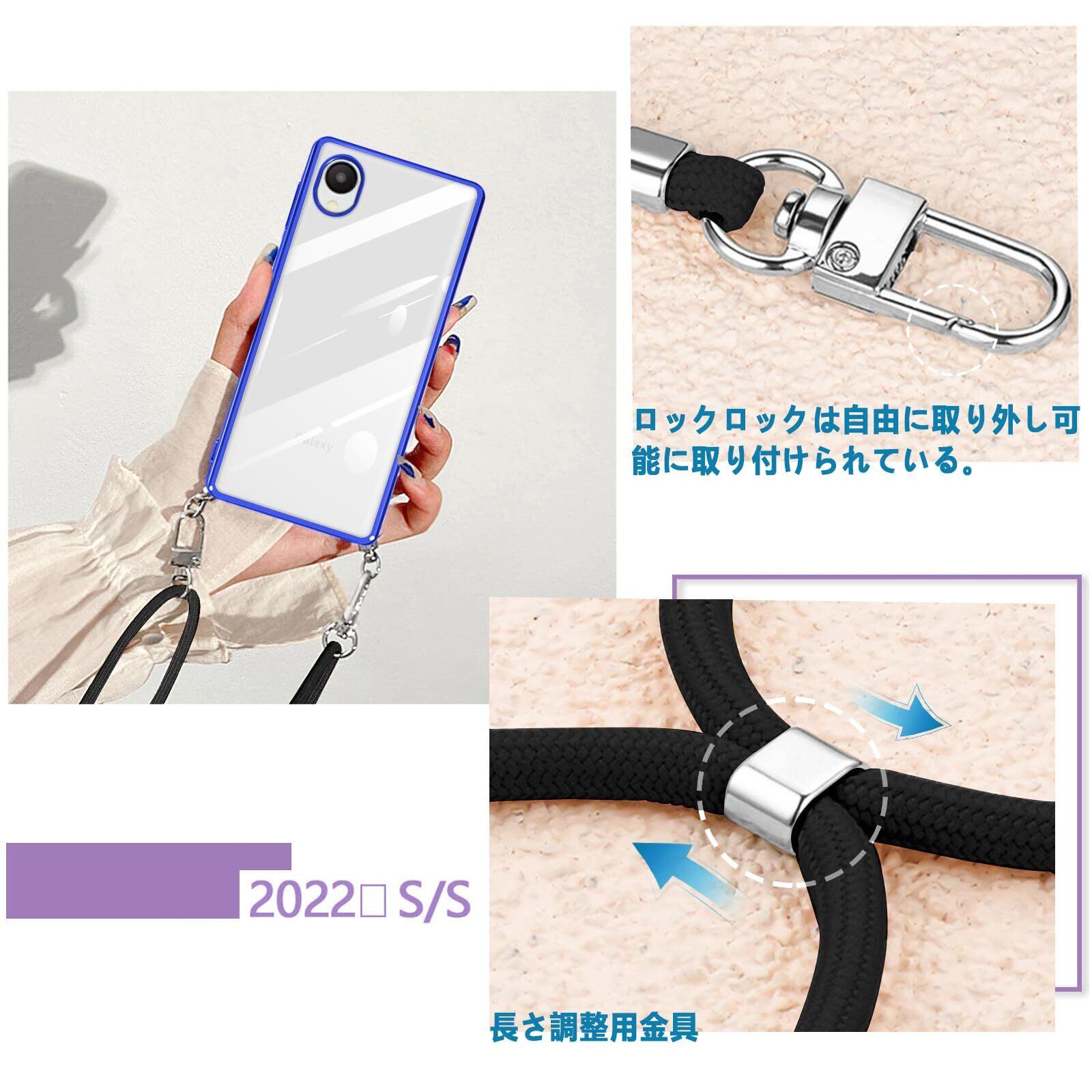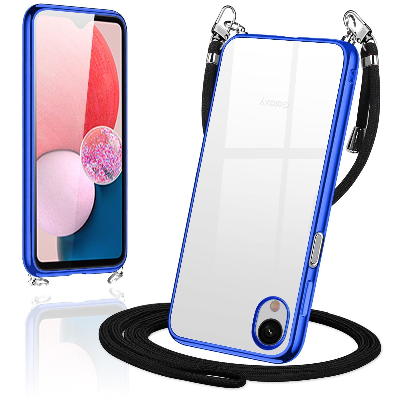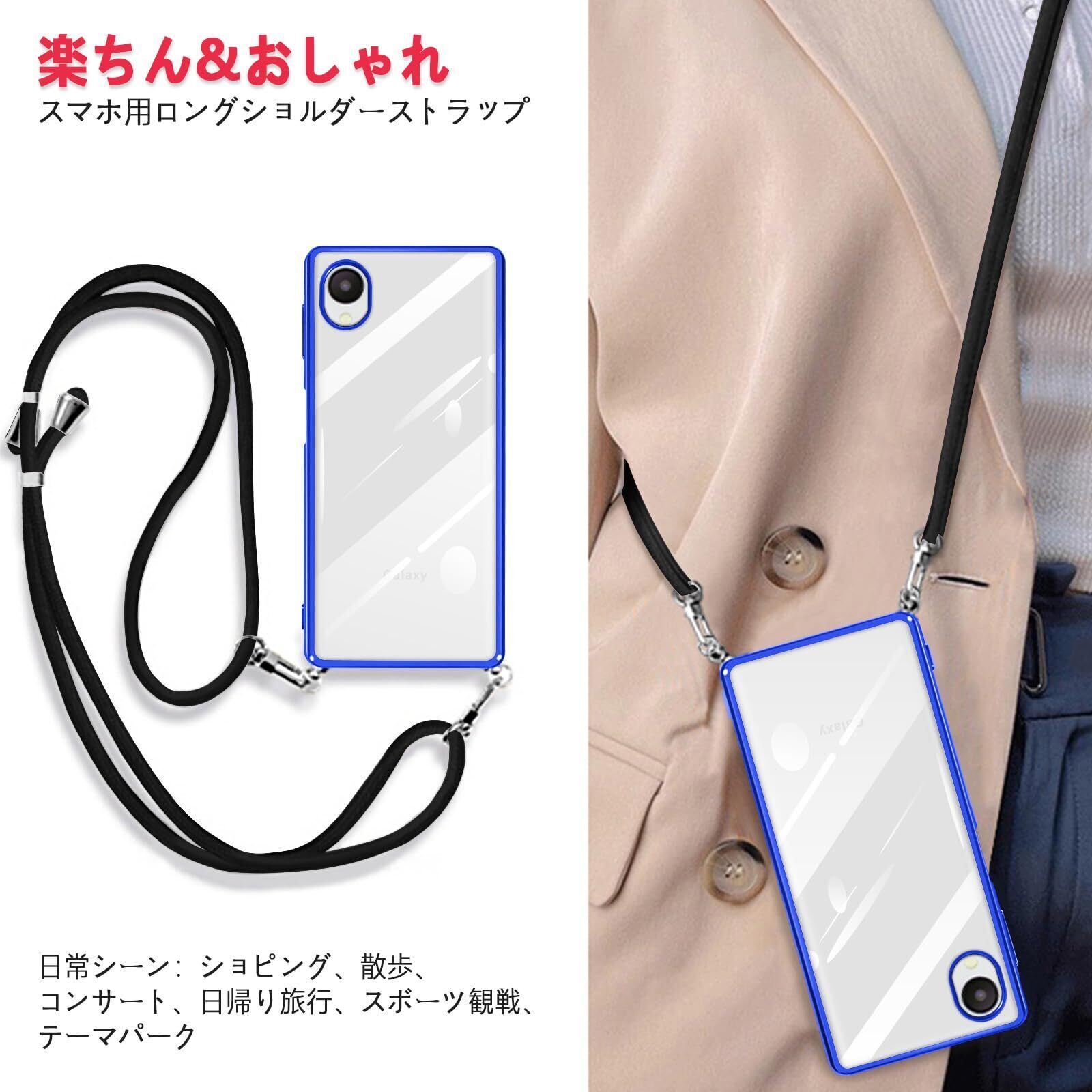 Galaxy A23 5G ケース ショルダー クリア SC-56C SCG18 カバー スマホケース 透明 TPU 肩掛け 首掛け 斜めかけケース 薄型 耐衝撃 シリコン メッキ加工 TPUバンパー(ブルー)