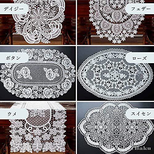 SweetBaku ヨーロピアンレース ドイリー ランチョンマット テーブルセンター テーブルマット クロス 30×45 30×90 (45㎝, フェザー)