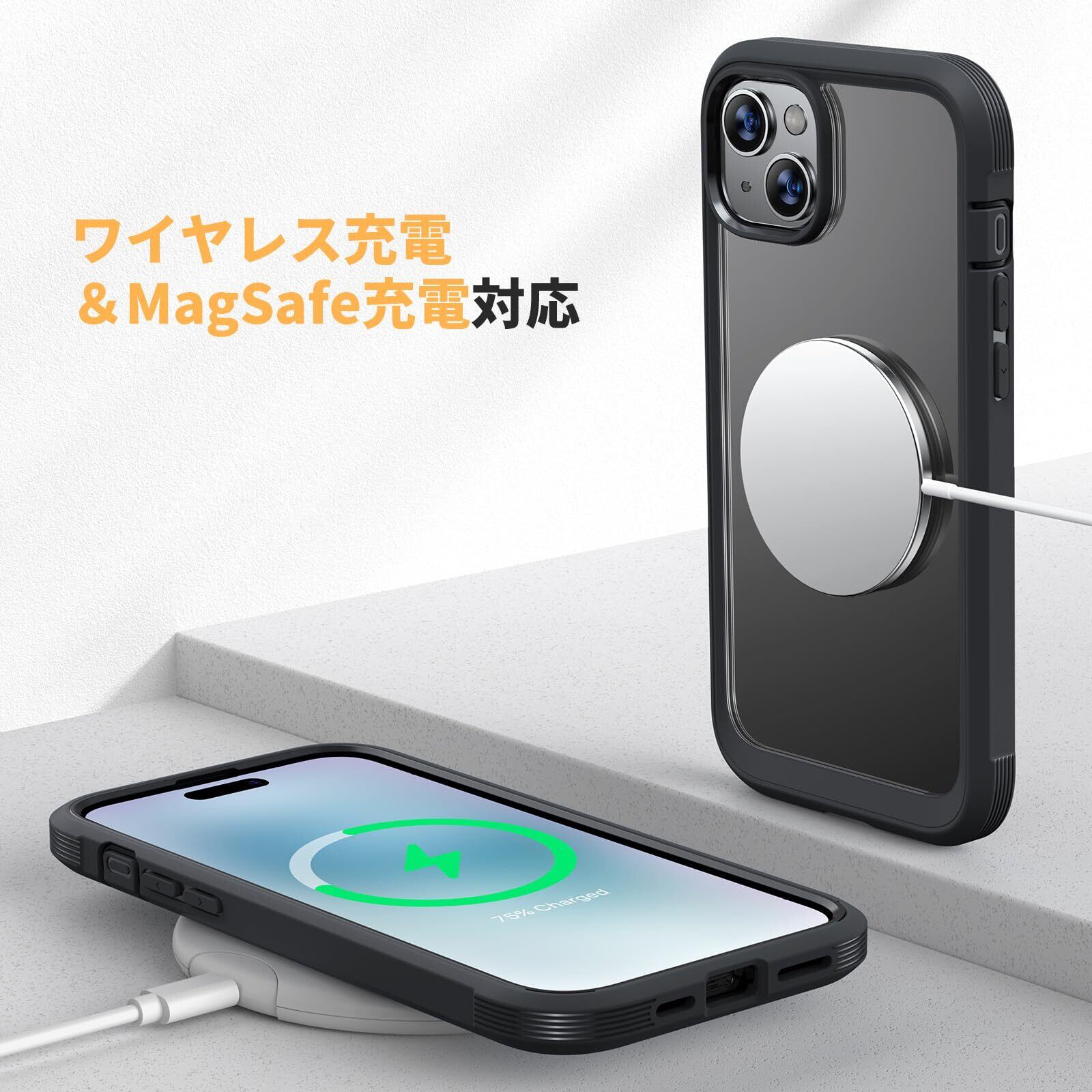 「ワイヤレス充電に対応」このいphone15 ケースはワイヤレス充電パッドで100%動作します。ケースを取り外す必要はありません。