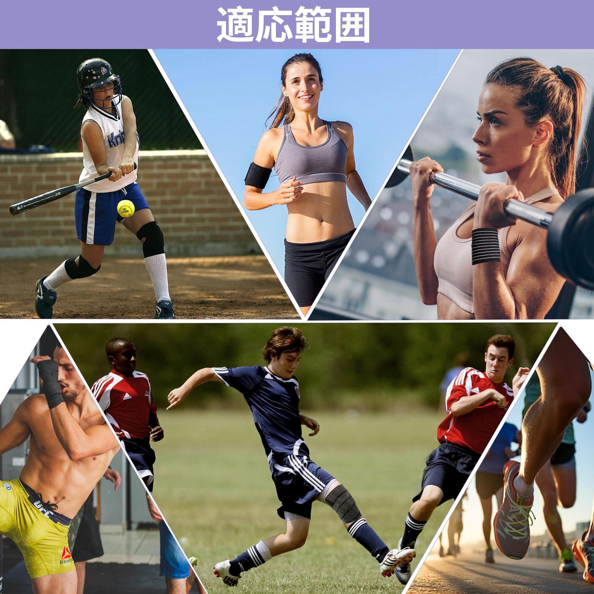 伸縮性がよい:弾力性を持っているニット生地を採用して、ずれにくく、手首や足首、ふくらはぎ、肘、腰など、必要な部位をしっかり圧迫サポートします。