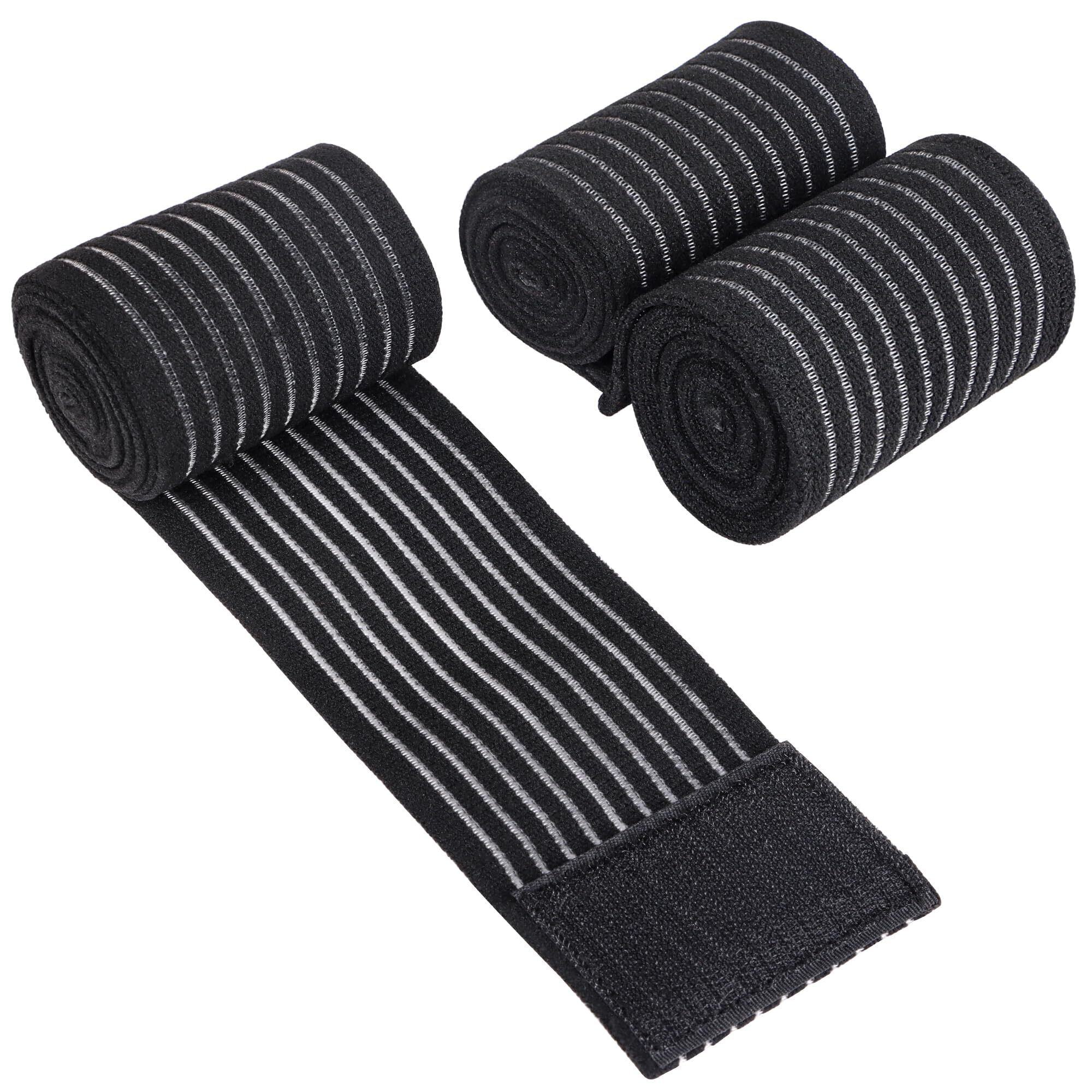 DERAYEE バンテージサポーター 調整可能 ゴムバンド 2枚 150cm 黑色 肘 膝 ふくらはぎ 足首 テーピングサポーター 太もも 肉離れ ひざ スポーツ 男女兼用 通気性 伸縮性 (黑, 150cm)