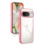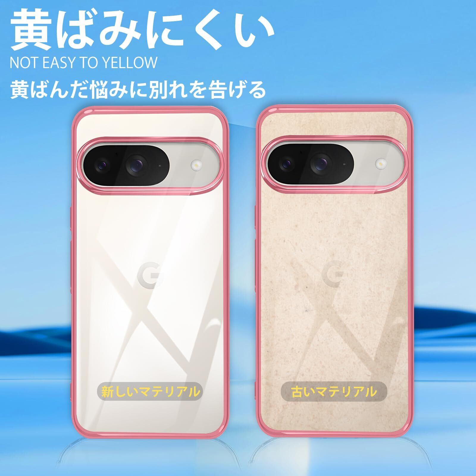 Google Pixel 9 / 9 Pro 用 ケース クリア メッキ加工 耐衝撃 薄型 軽量 柔軟 バイエル製TPU素材 カバー 全透明 黄変防止 指紋防止 レンズ保護 擦り傷防止 Pixel 9 / 9 Pro スマホケース ワイヤレス充電対応 ピクセル 9 / 9 Pro ケース ストラップホール付き 6.3インチ (ローズゴールド)